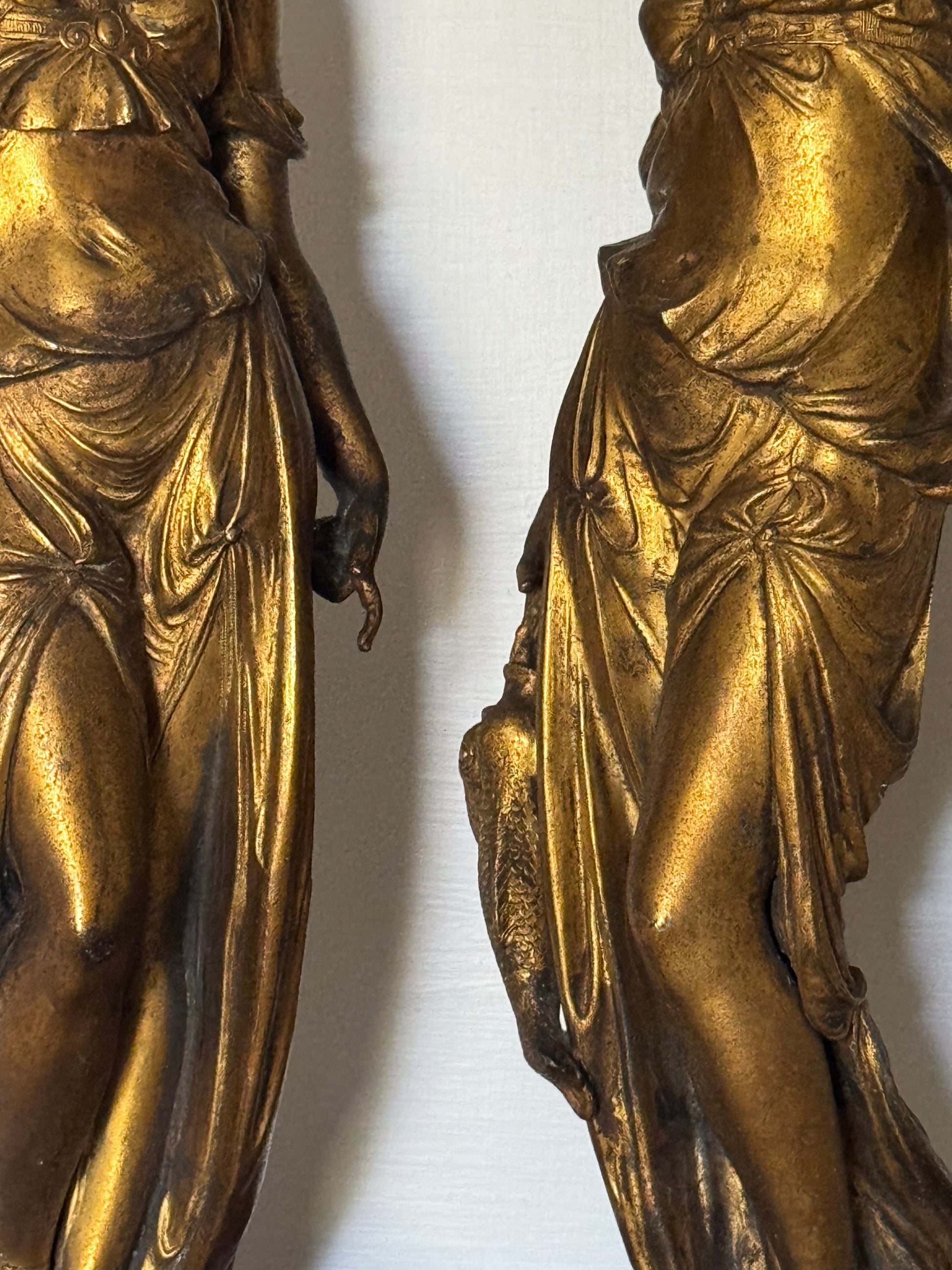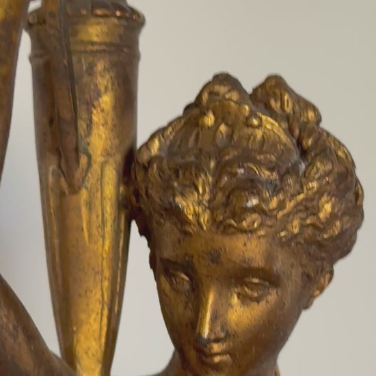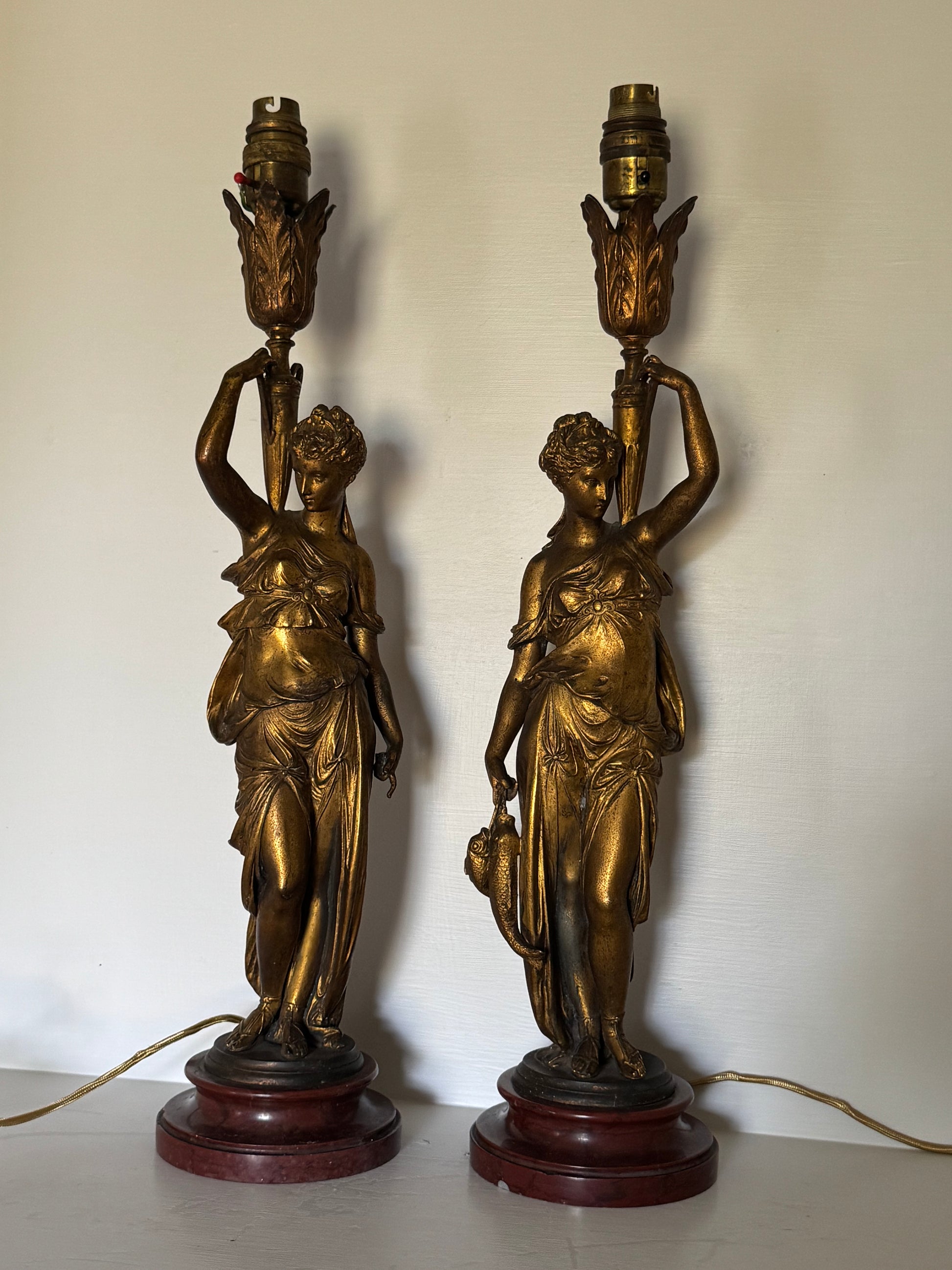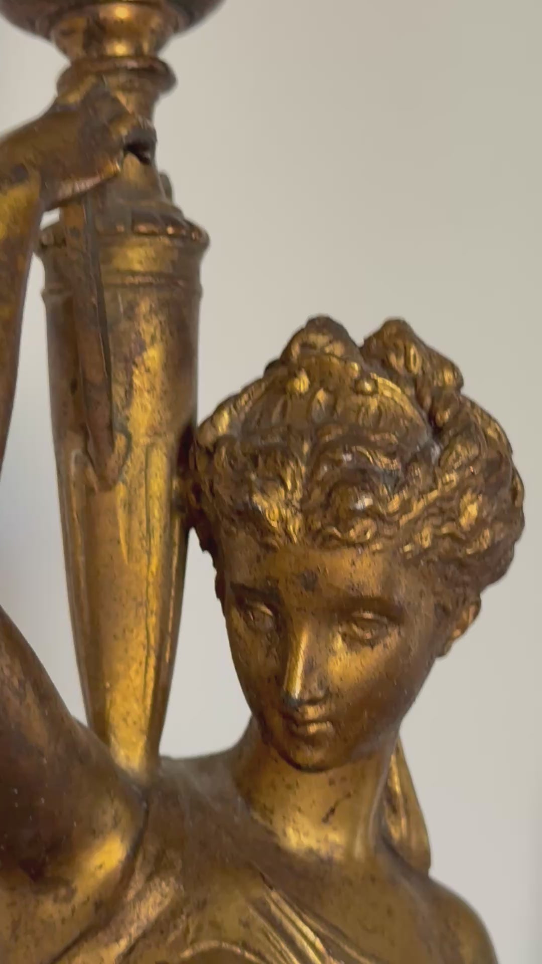 Antique French Gilt Metal Table Lamps: Classical Maiden Design, 1890s