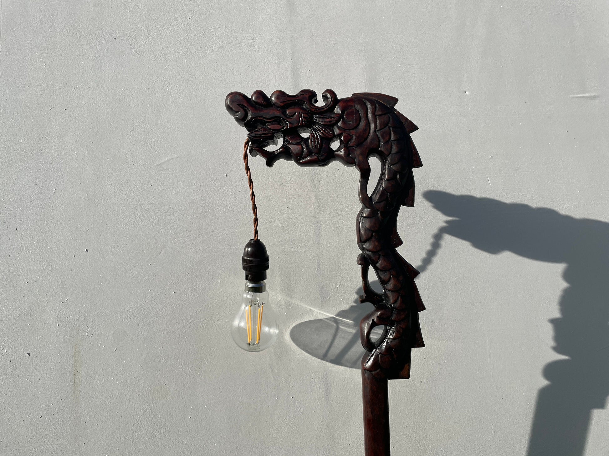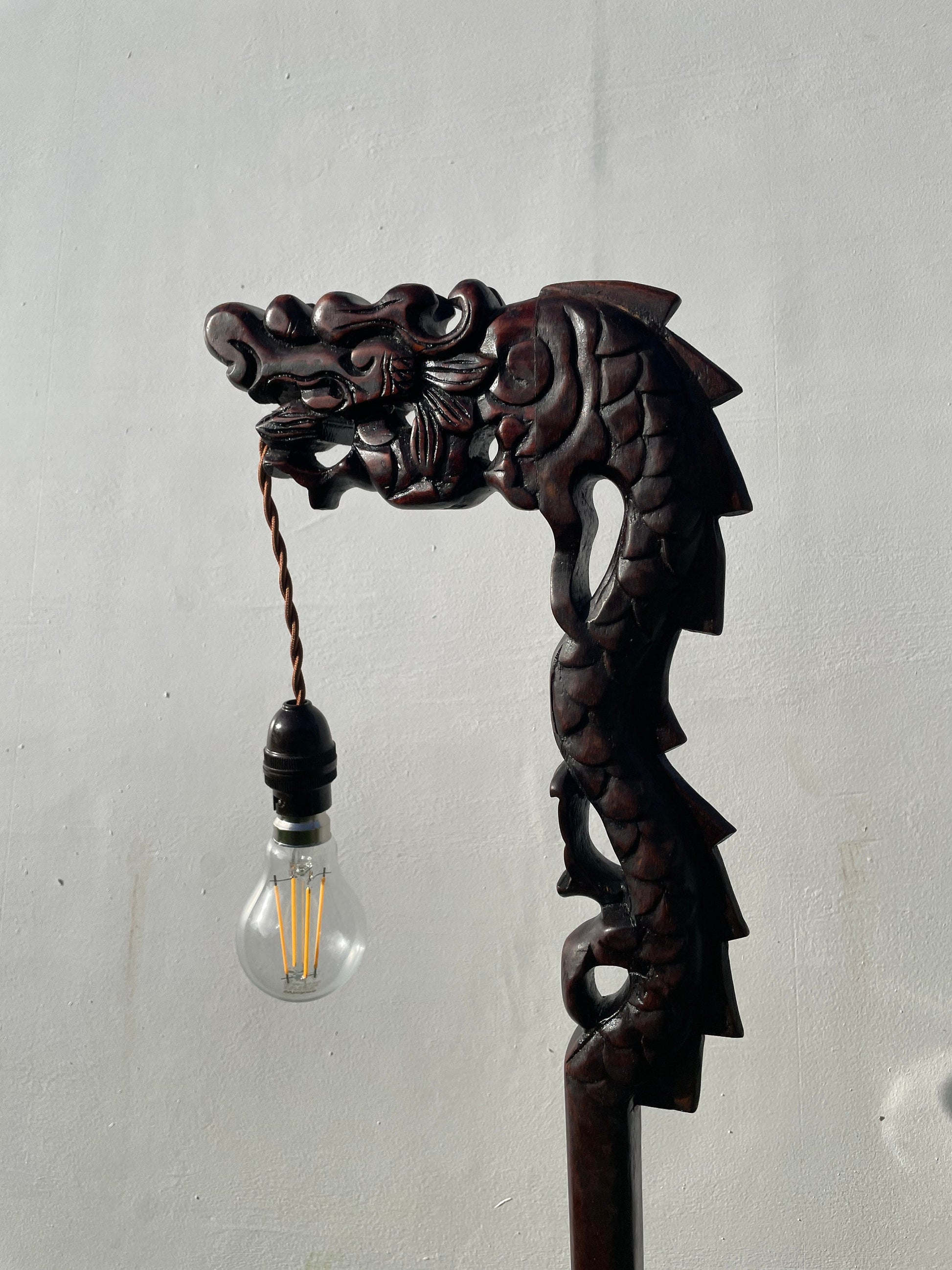 Antique Hand Carved Hardwood Oriental Dragon Table Lamp 1920's