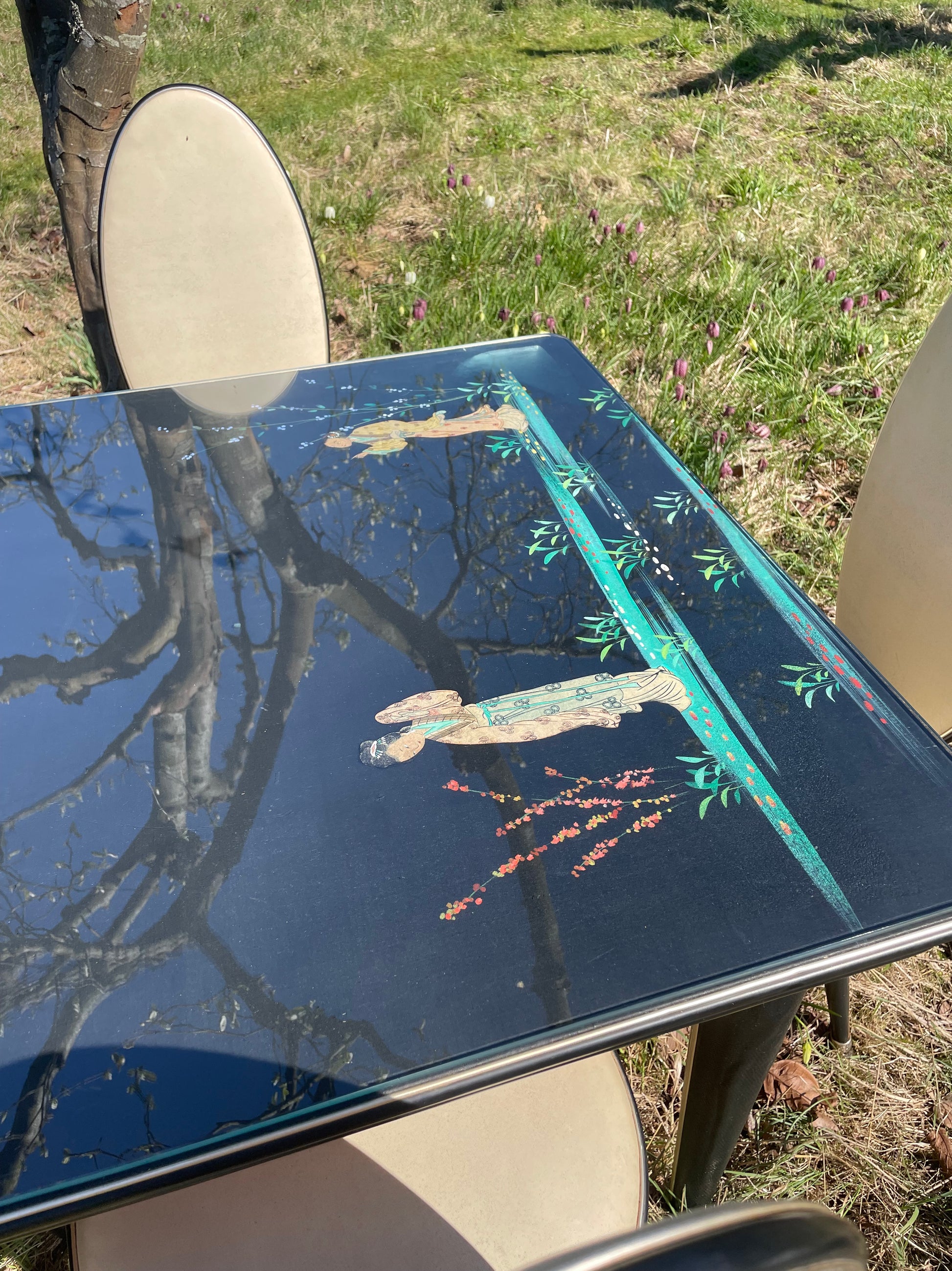 **FOR LINDA** Price includes Shipping *****Hollywood Regency Mid Century modern Chinoiserie dining set by Umberto Mascagni.