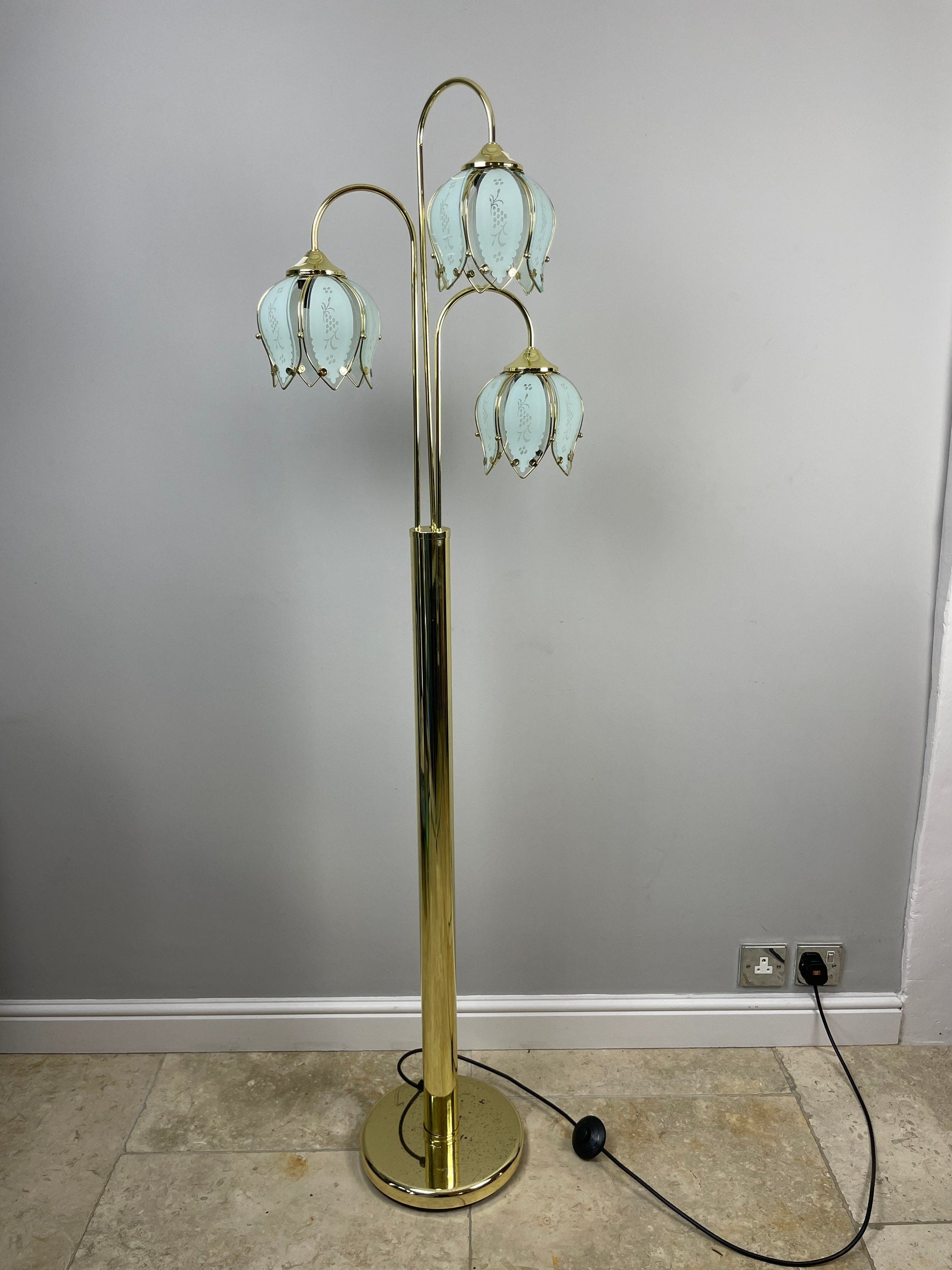 Reserved for Ashley **** Italian Vintage Hollywood Regency mid century White Flower brass floor lamp