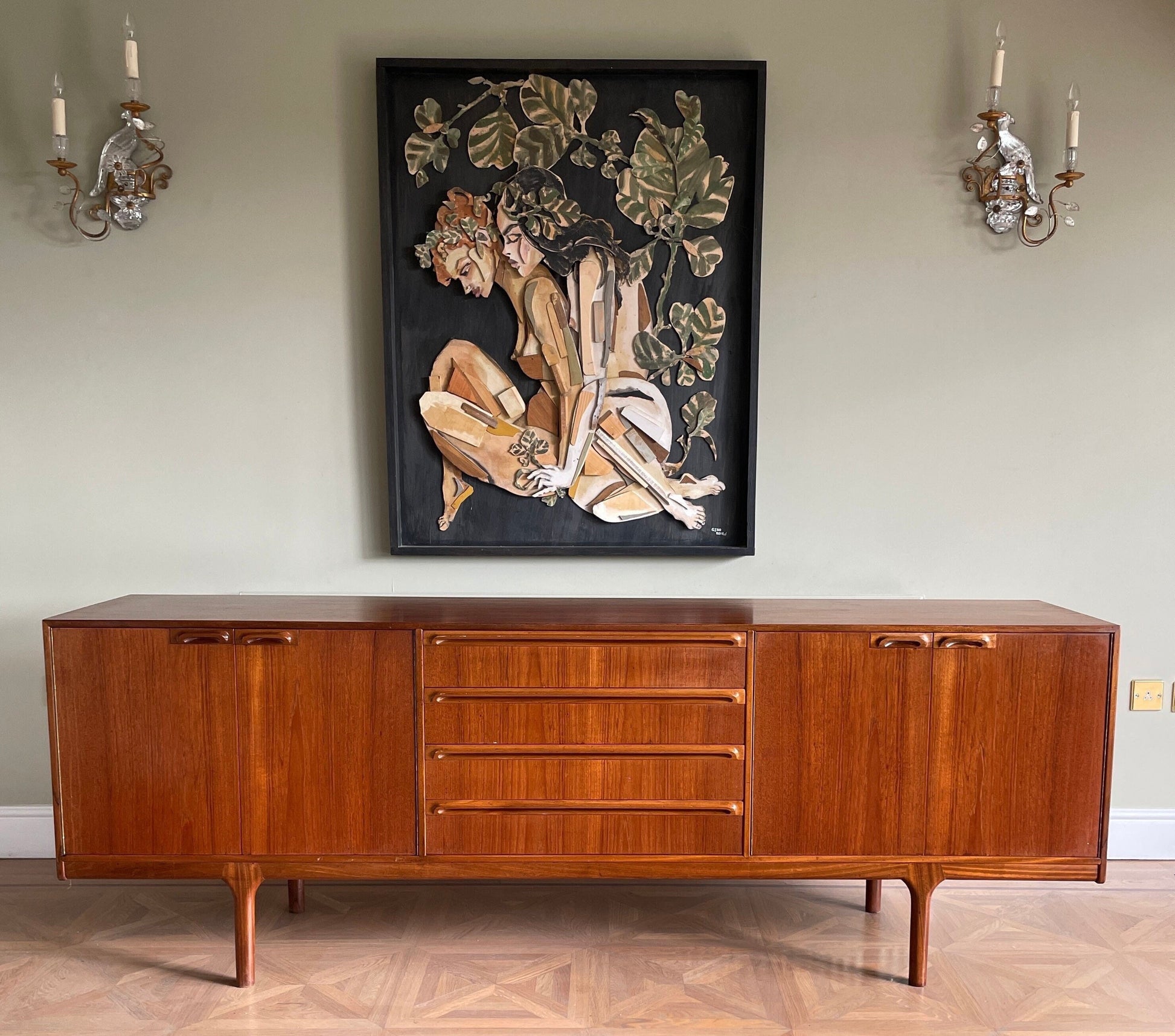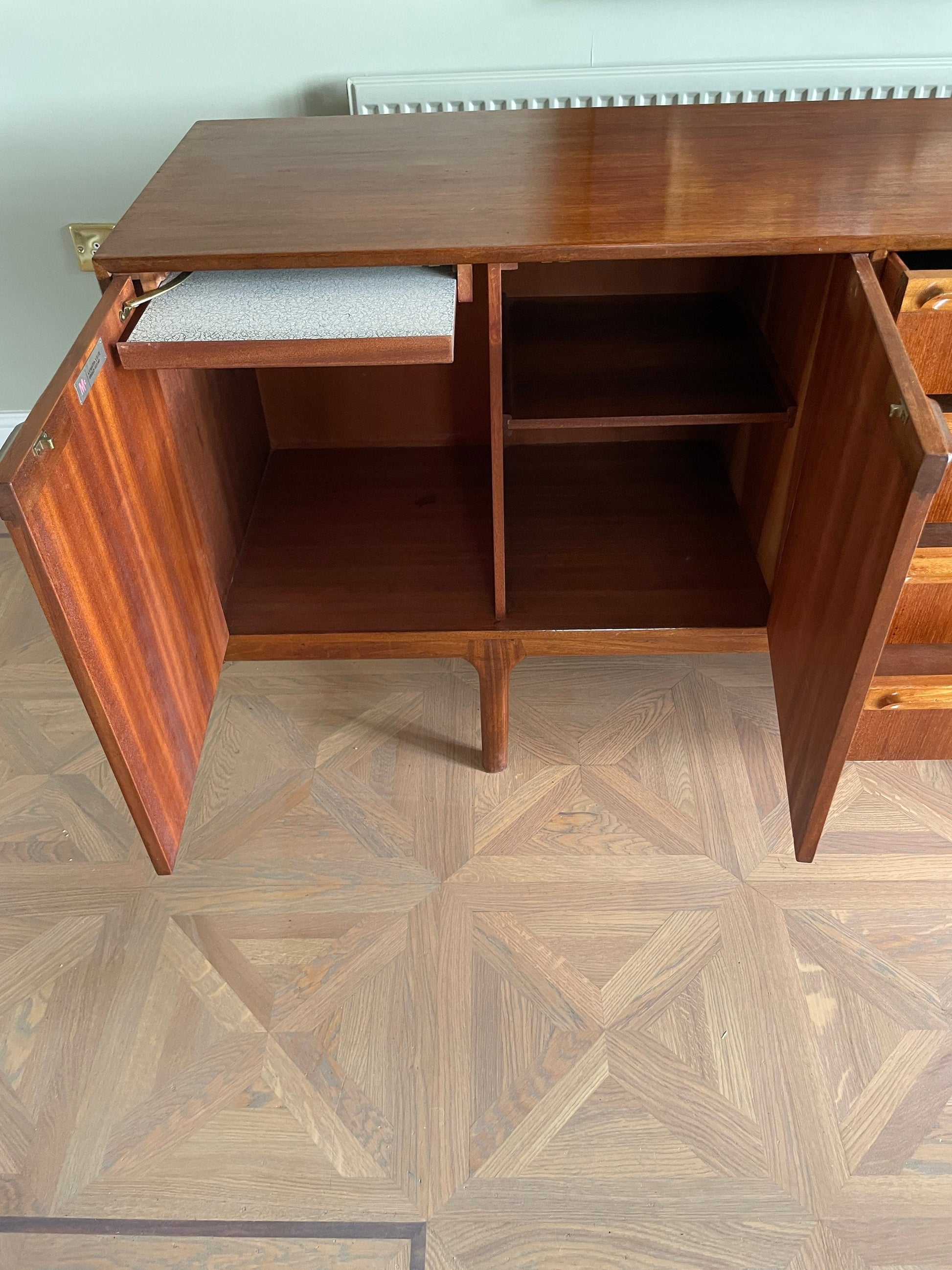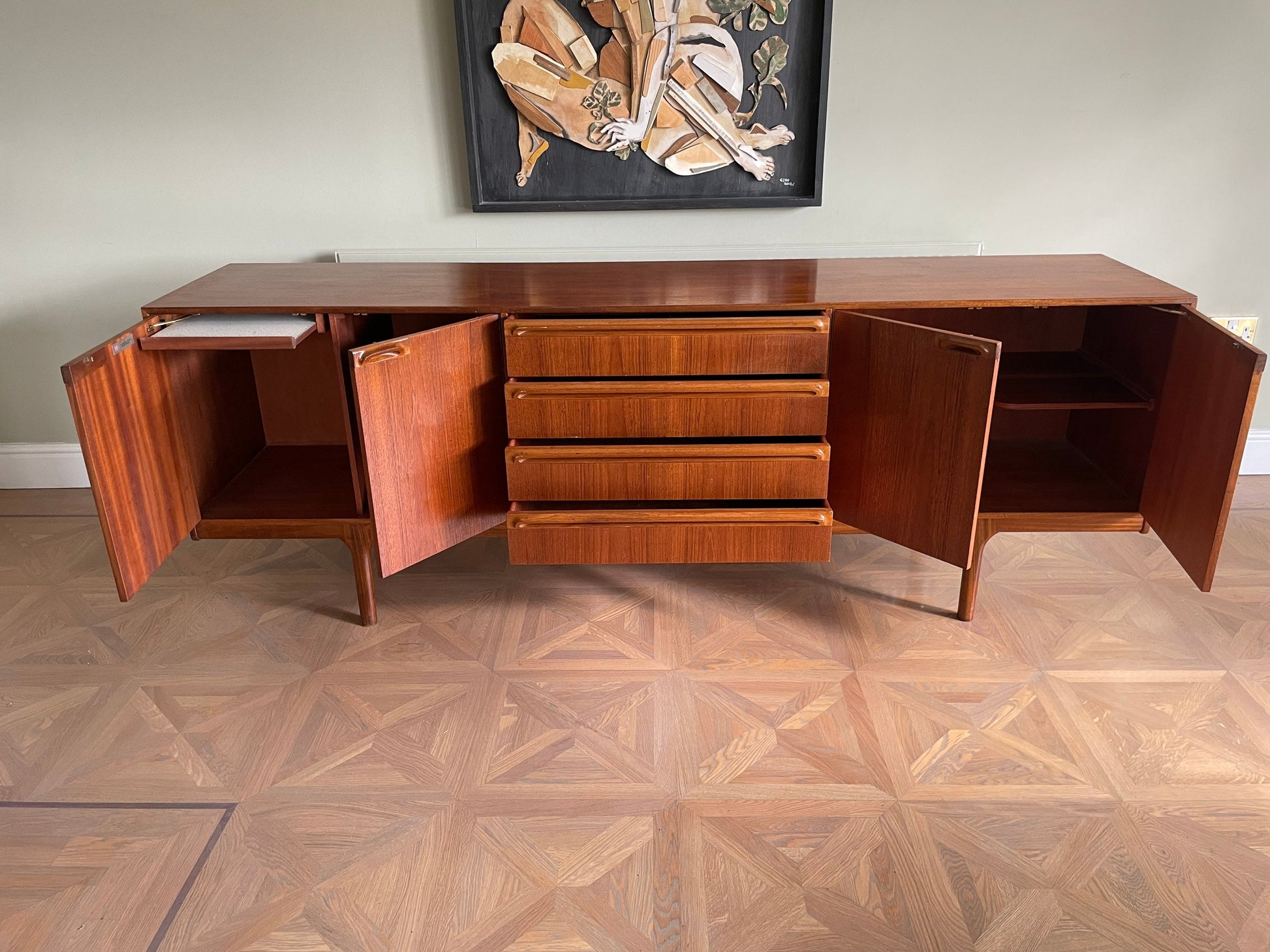 An iconic mid-century modern teak sideboard. Symmetrically designed by Tom Robertson for A.H. McIntosh in Scotland in the late ’60s.