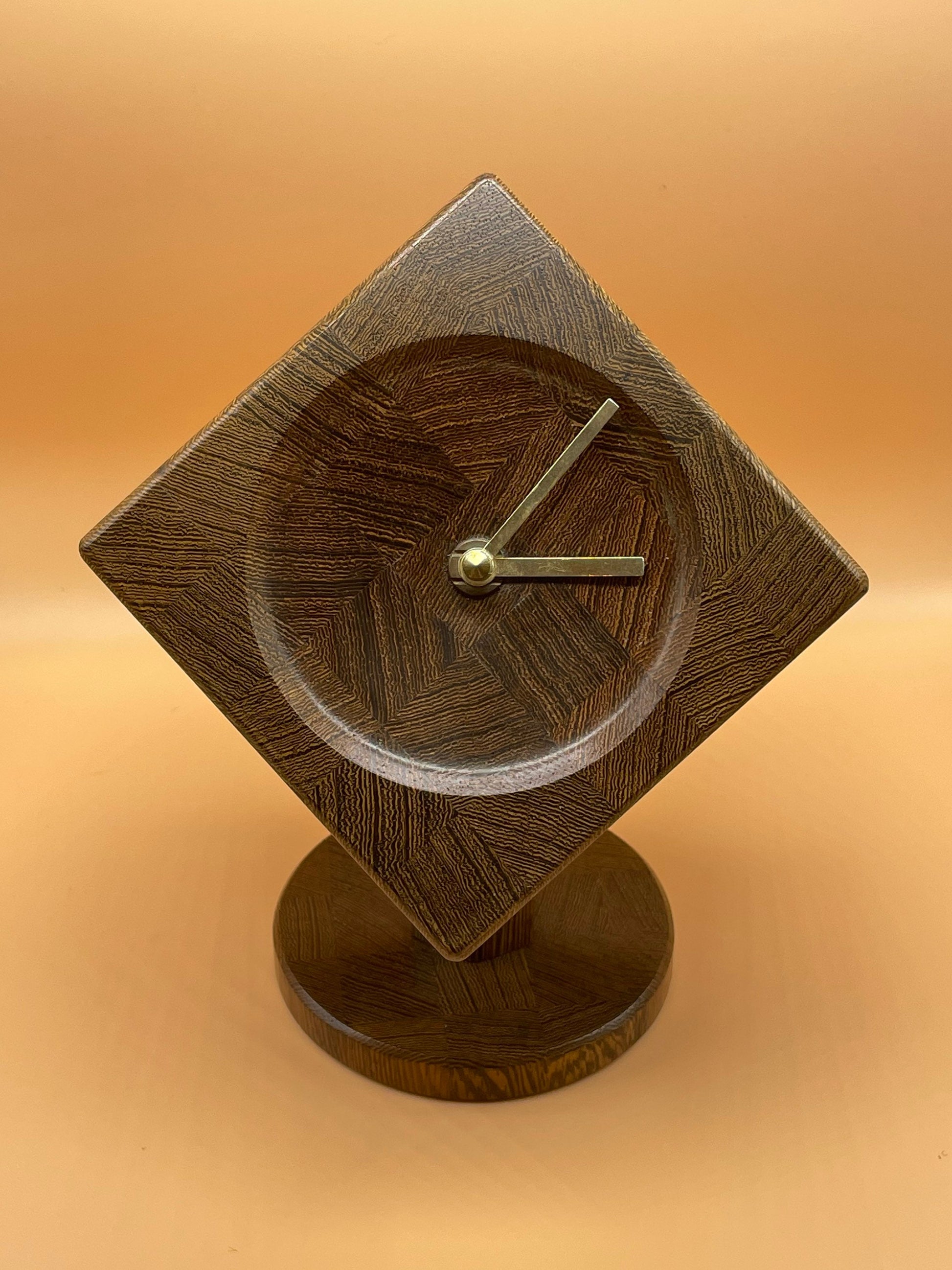 Mid Century Modern 1970s Wenge Wood Desk Clock