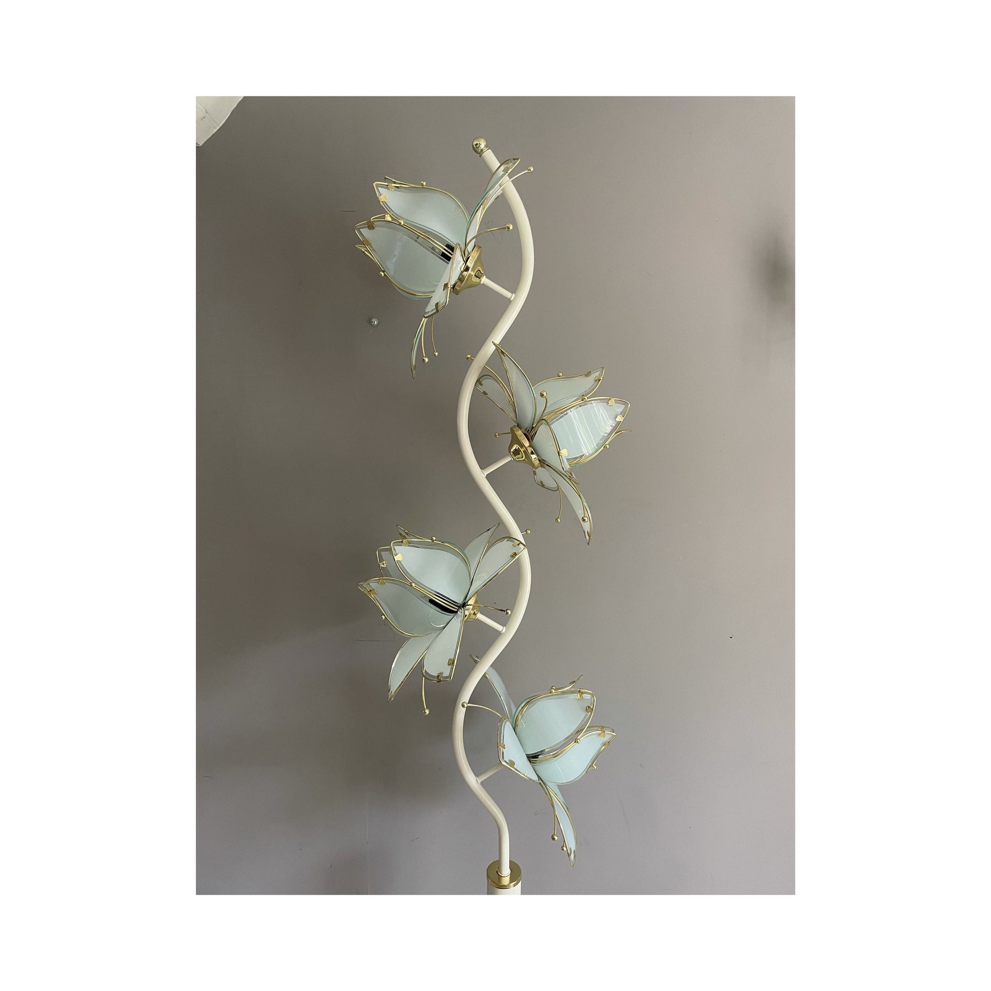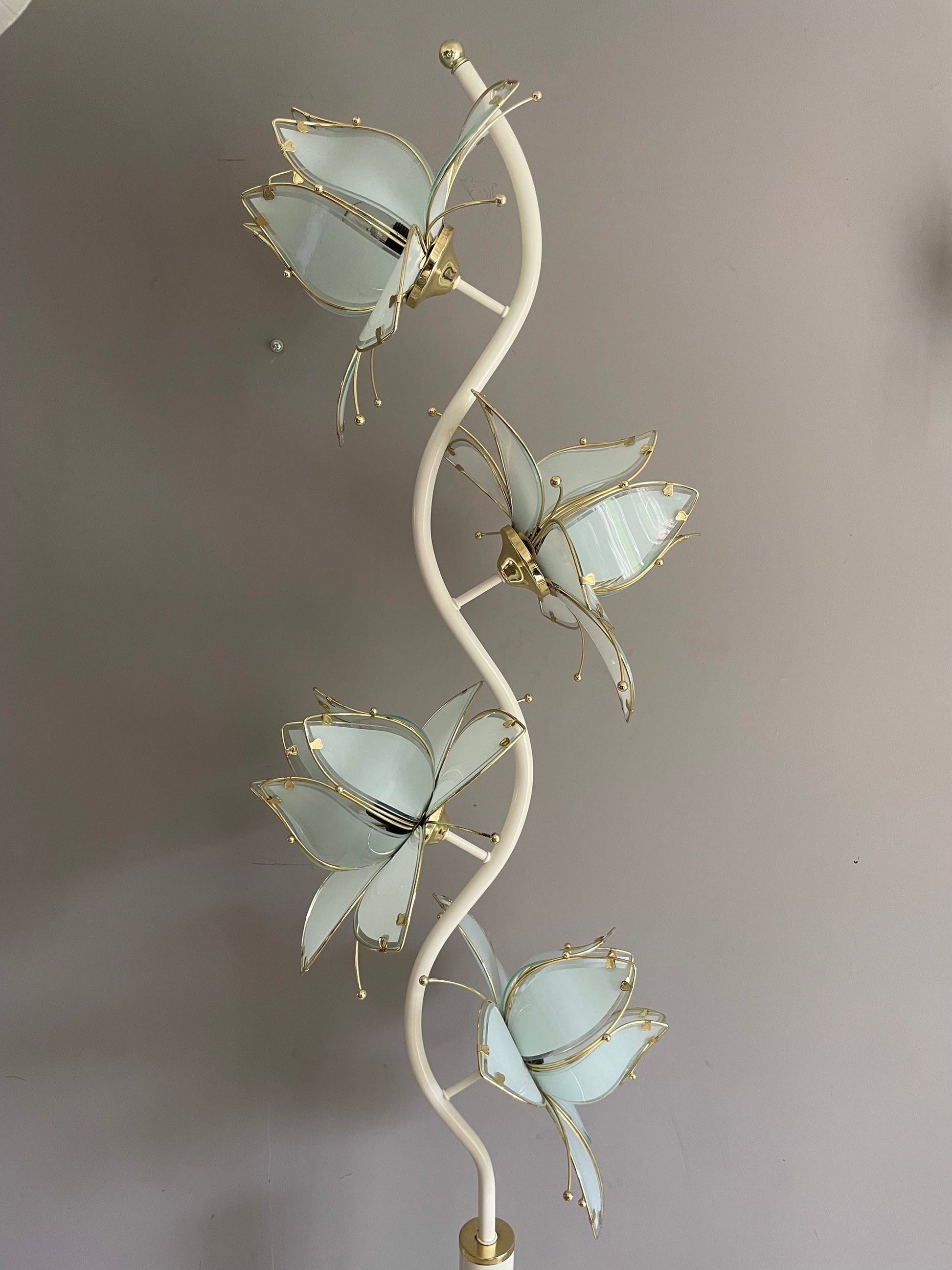 Mid Century Modern Vintage Hollywood Regency huge white glass lotus flower floor lamp.