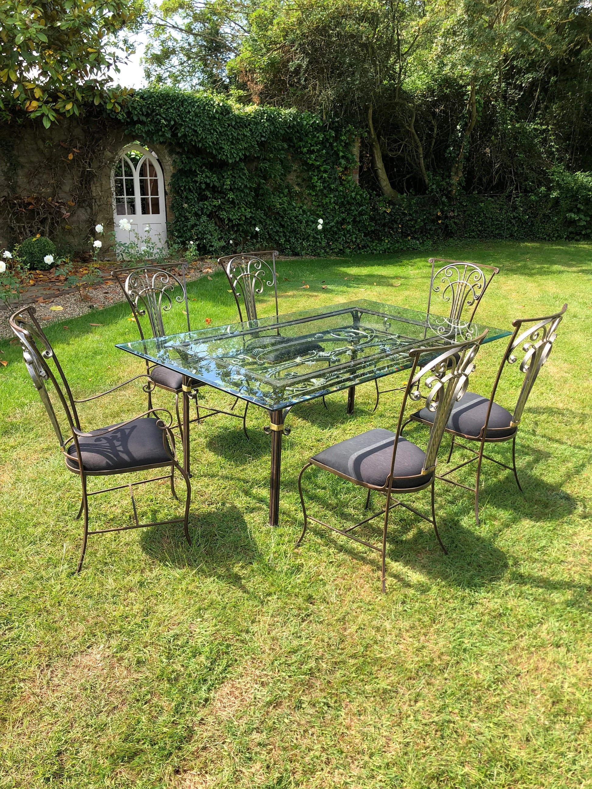 Beautiful classic wrought iron dining table. Amazing intricate design. Versatile dining table it is suitable for indoor and outdoor use. The glass on the top of the table is designed to fit perfectly but is also removable.