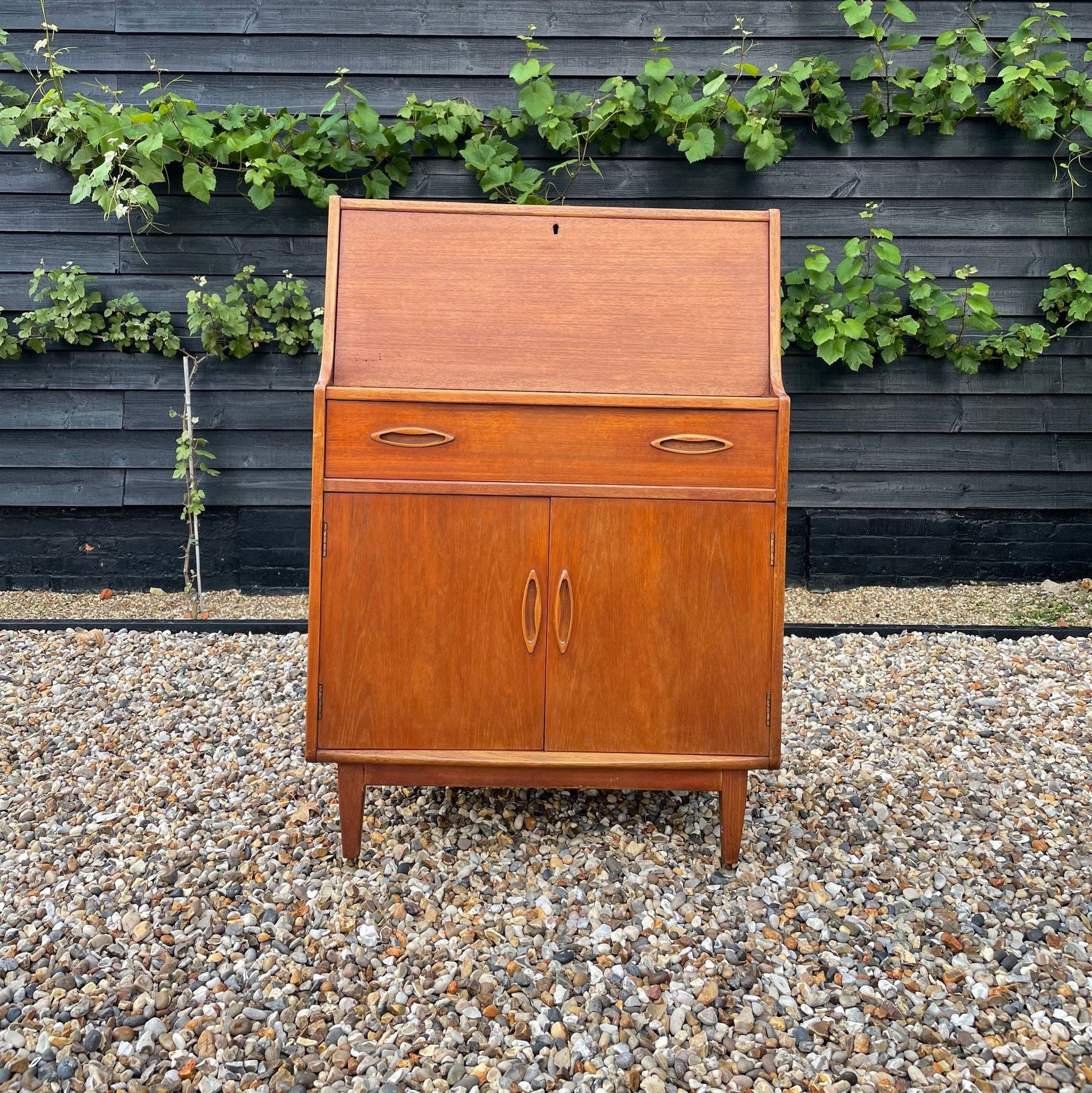 This wonderful Jentique Bureau is ideal for home working that adds a certain sense of 1960s style. It has been newly restored and waxed so it is in great vintage condition. It has lots of space for storage and with a drawer and large cupboard below. It also comes with a lock and key for your keepsakes.
