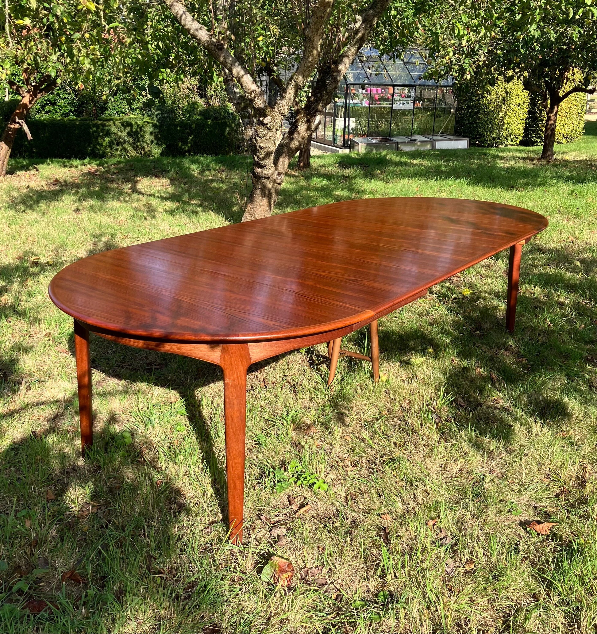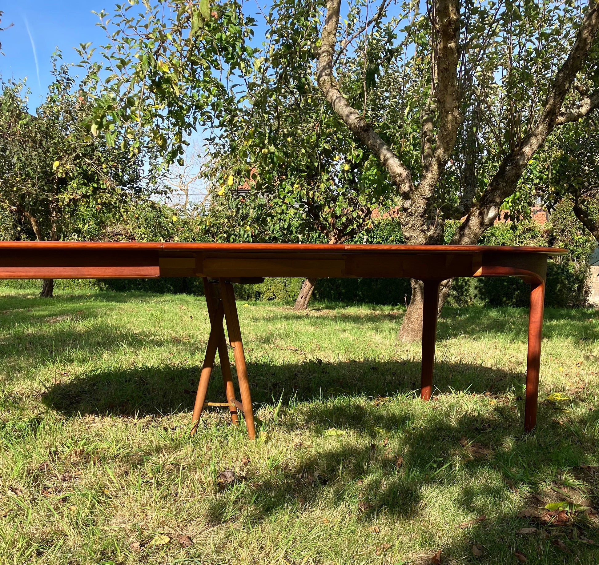 Mid Century Modern Model 62 Extra Large Extending Dining Table By Henning Kjærnulf for Sorø Stolefabrik In Teak 10-12 Seater Fully Restored