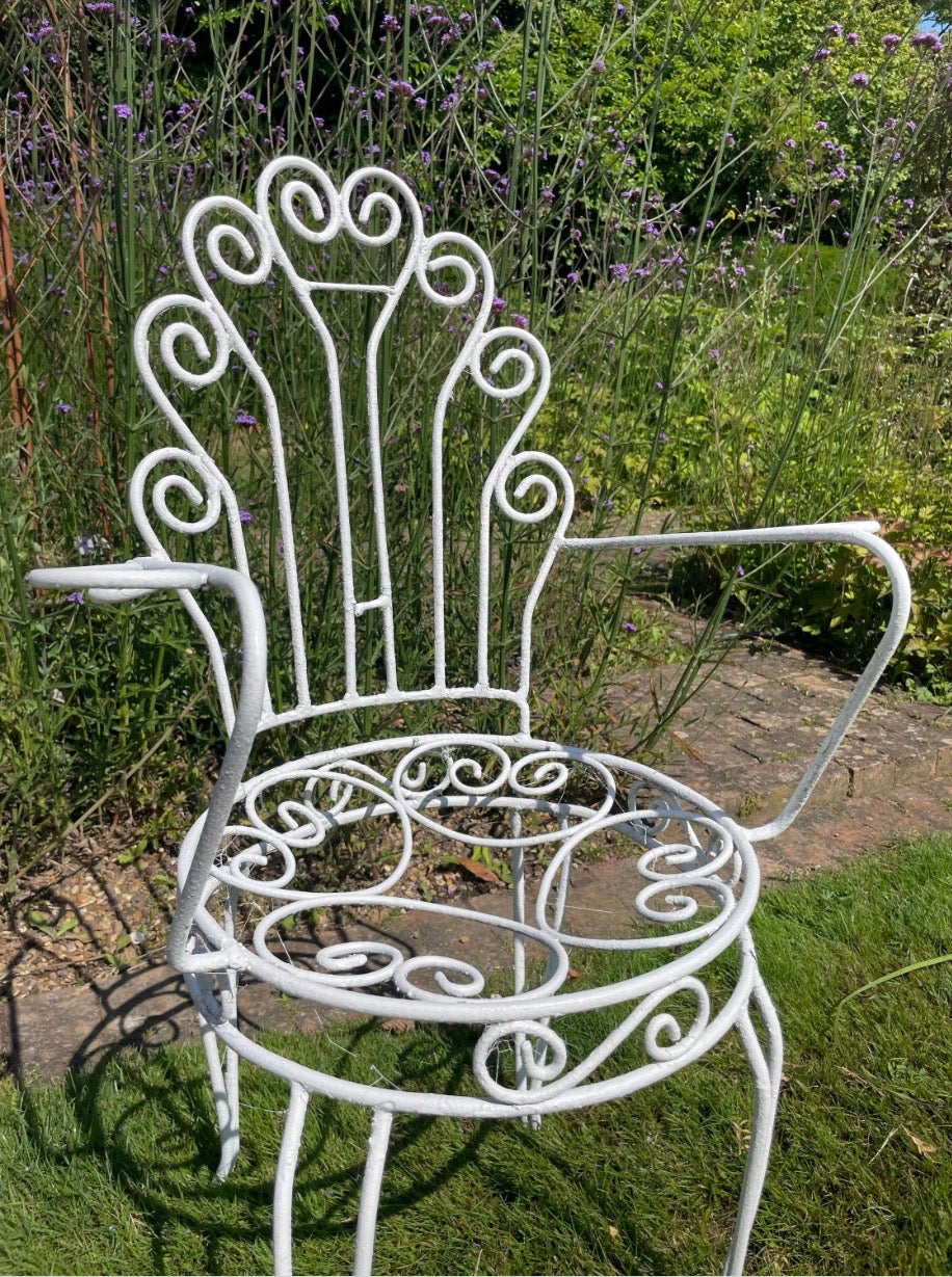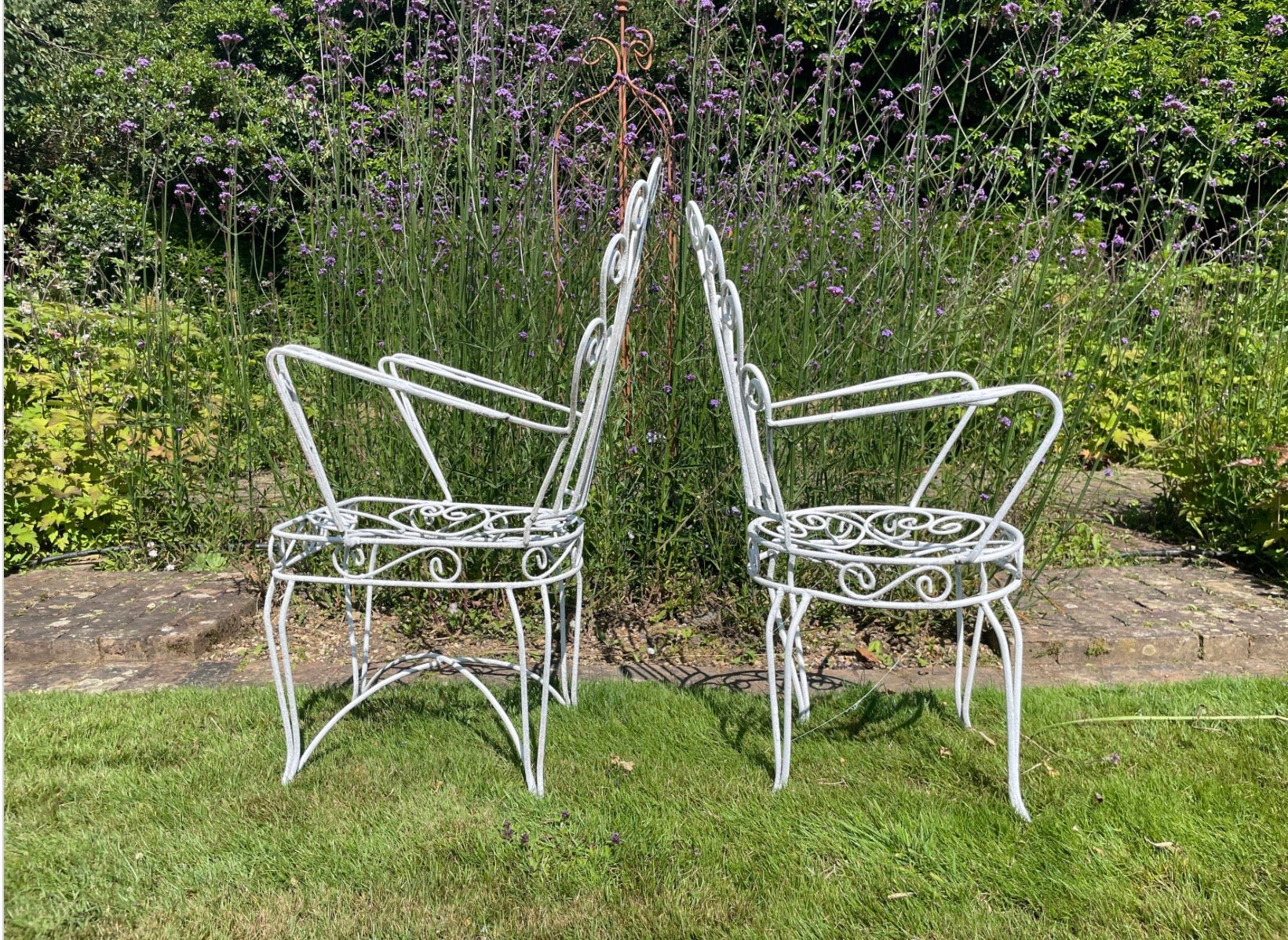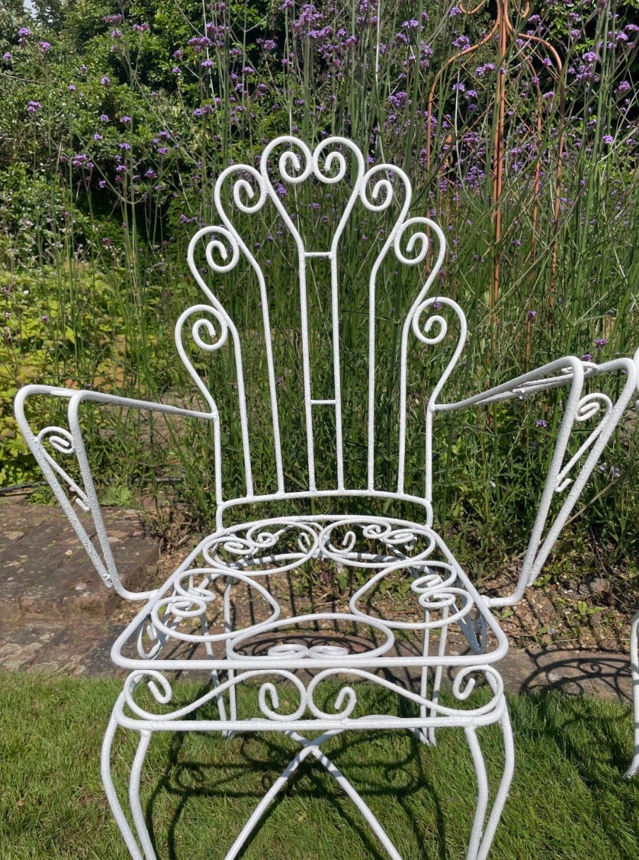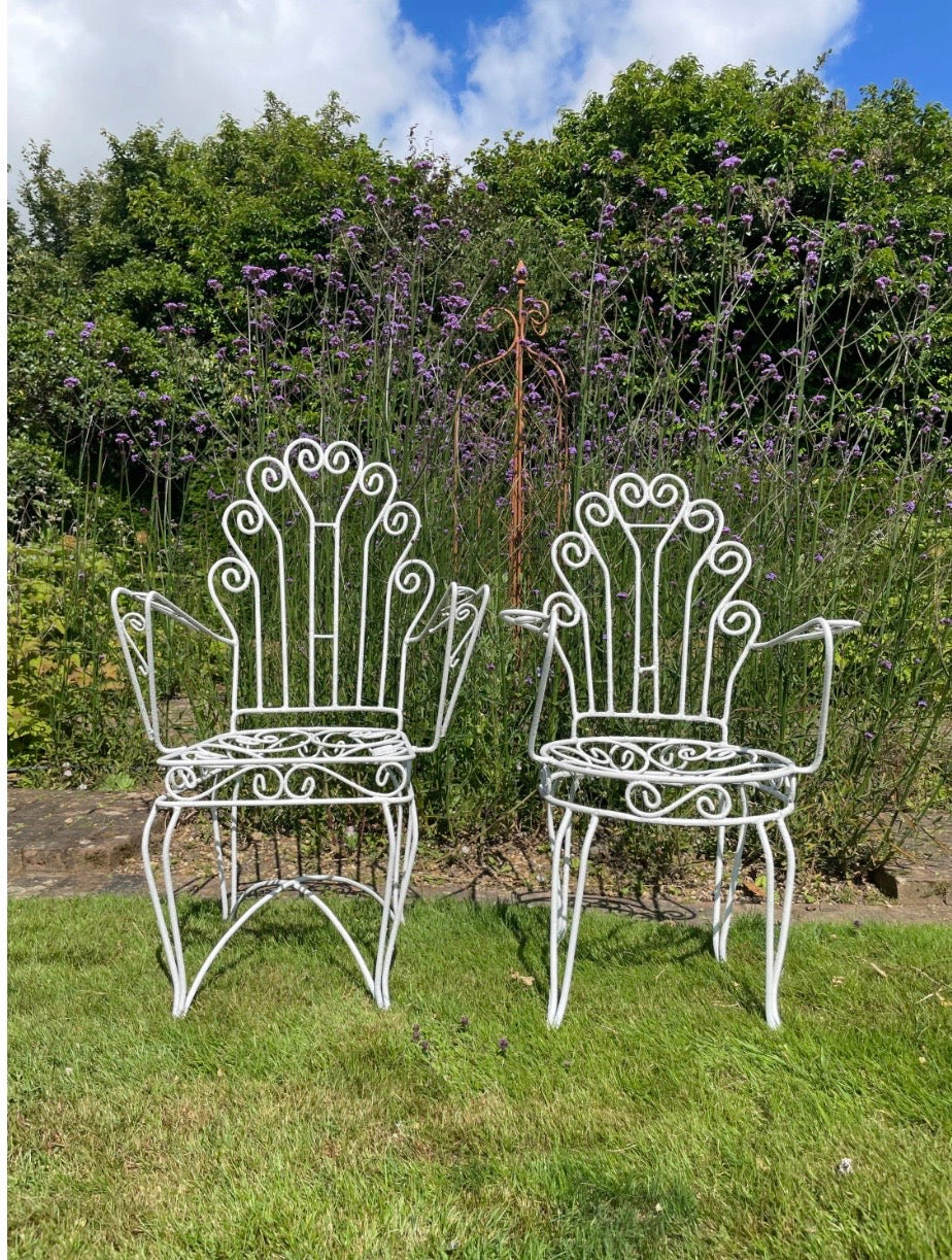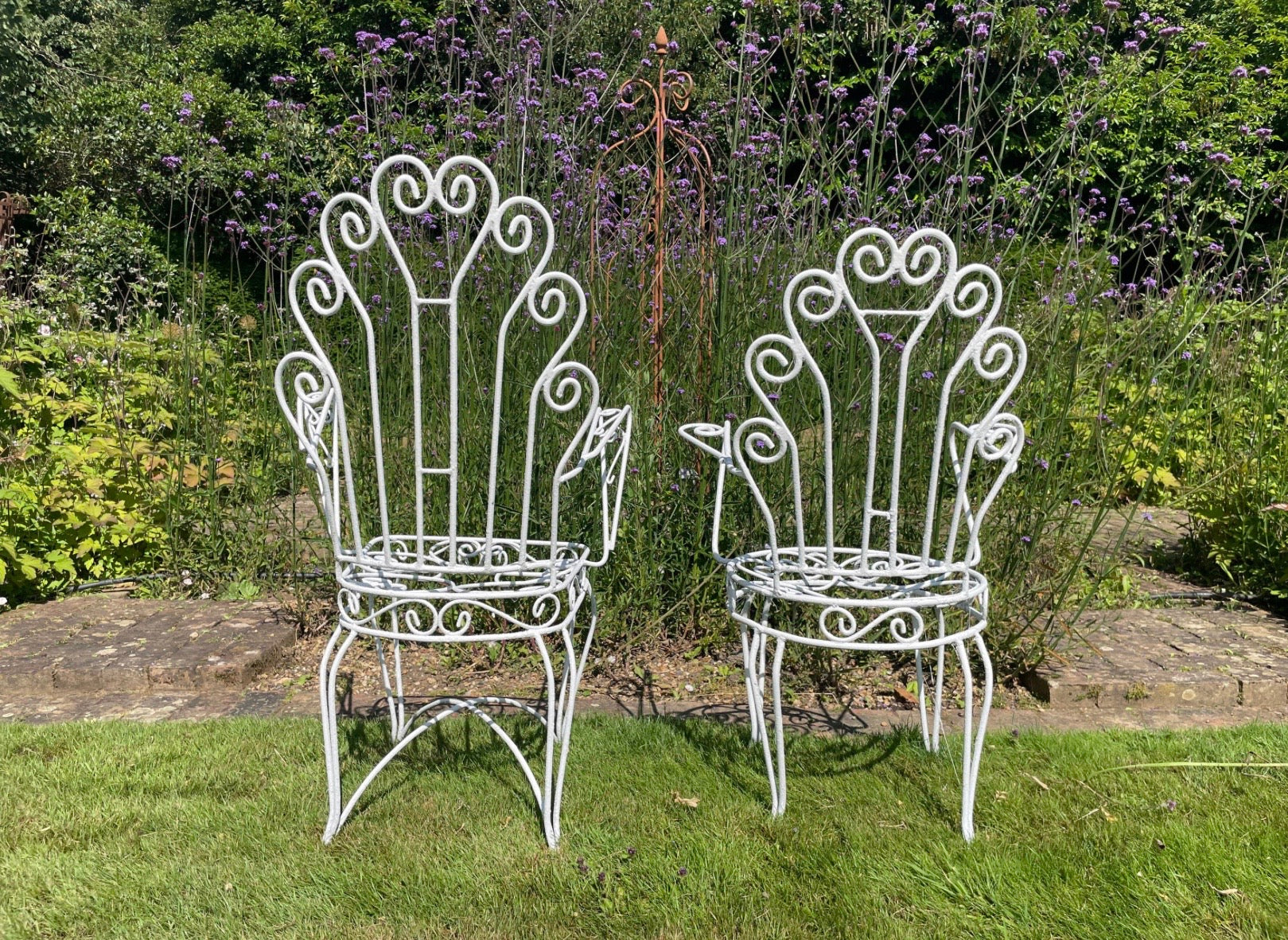 Beautiful pair of wrought iron Swedish chairs, perfect for outdoor use. The chairs are a very pretty pair, with very slight differences in their design. The sofa and the set are available to be purchased separately, please check other listings on our website.