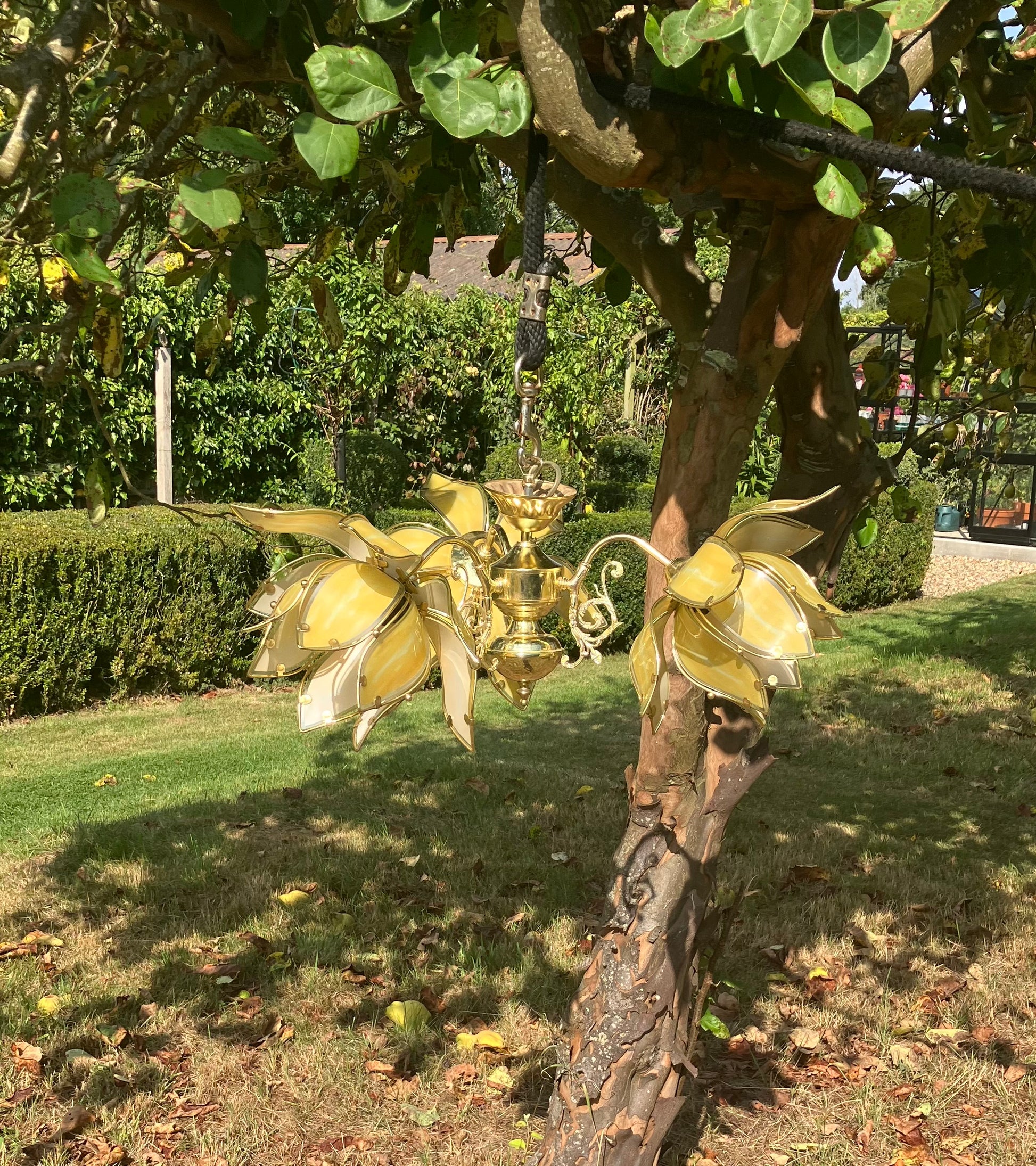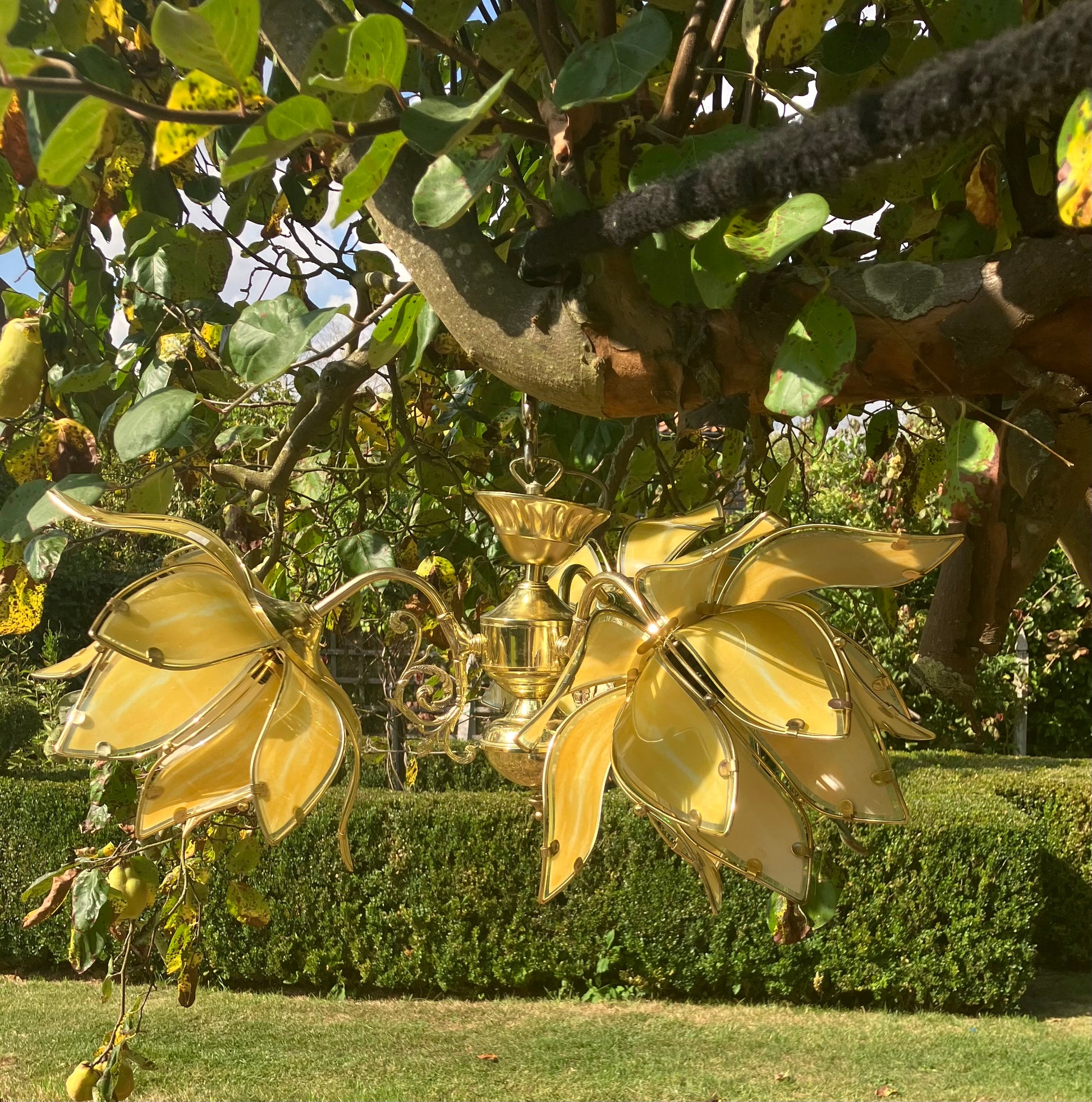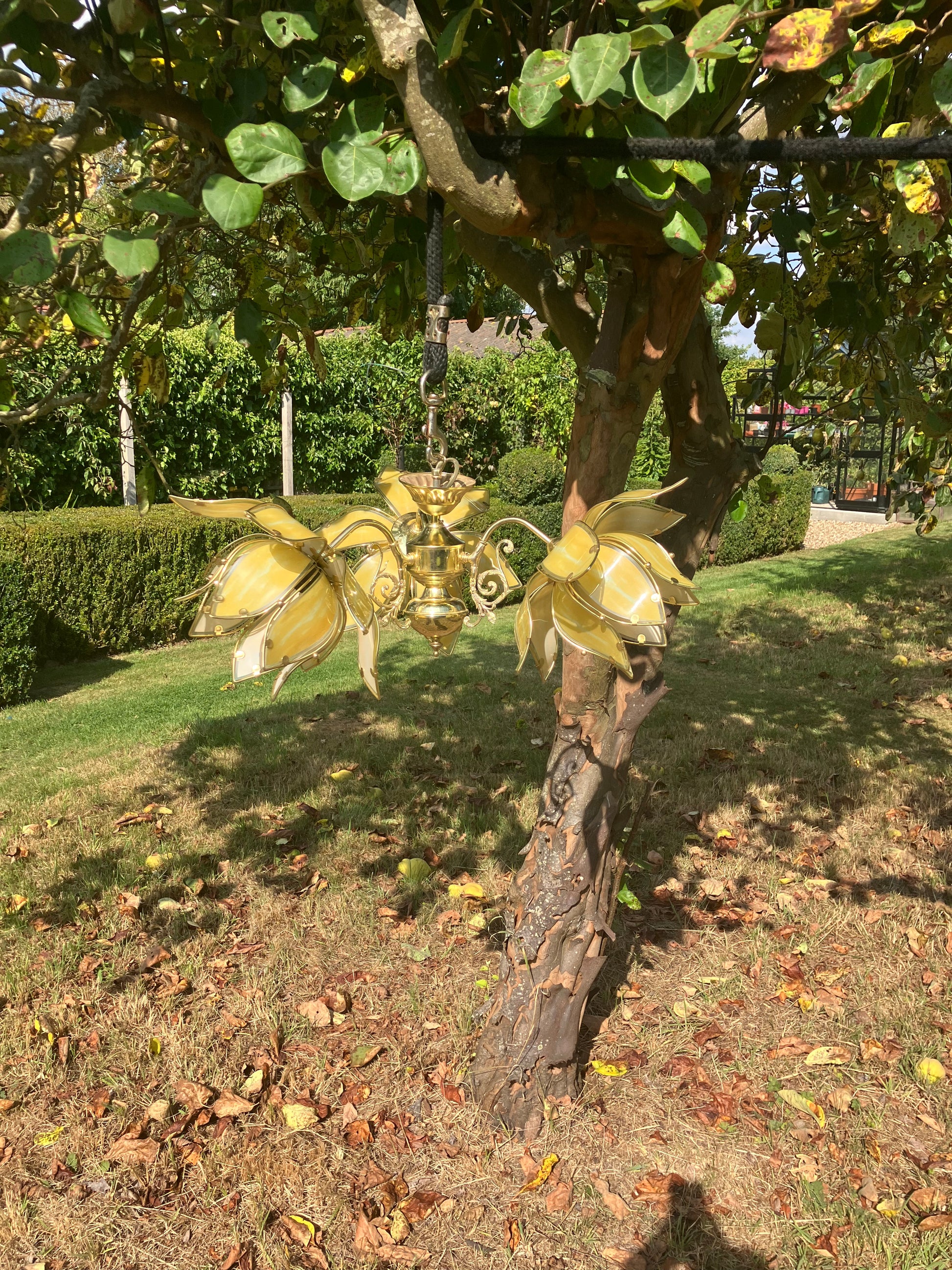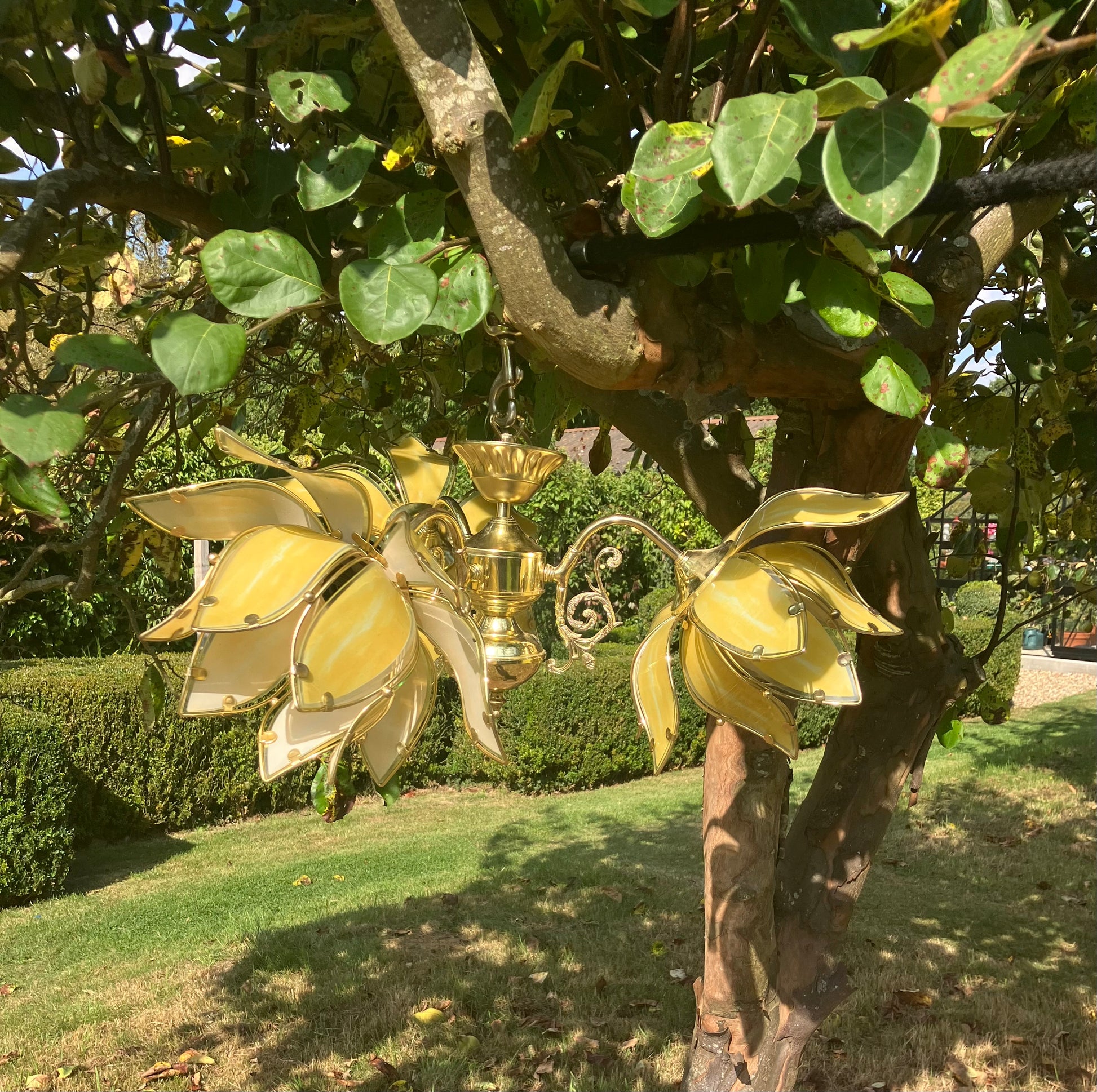For Sophia ** Price includes shipping ***Mid Century Modern Vintage Hollywood Regency Lotus Lamp Large Yellow glass etched Chandelier