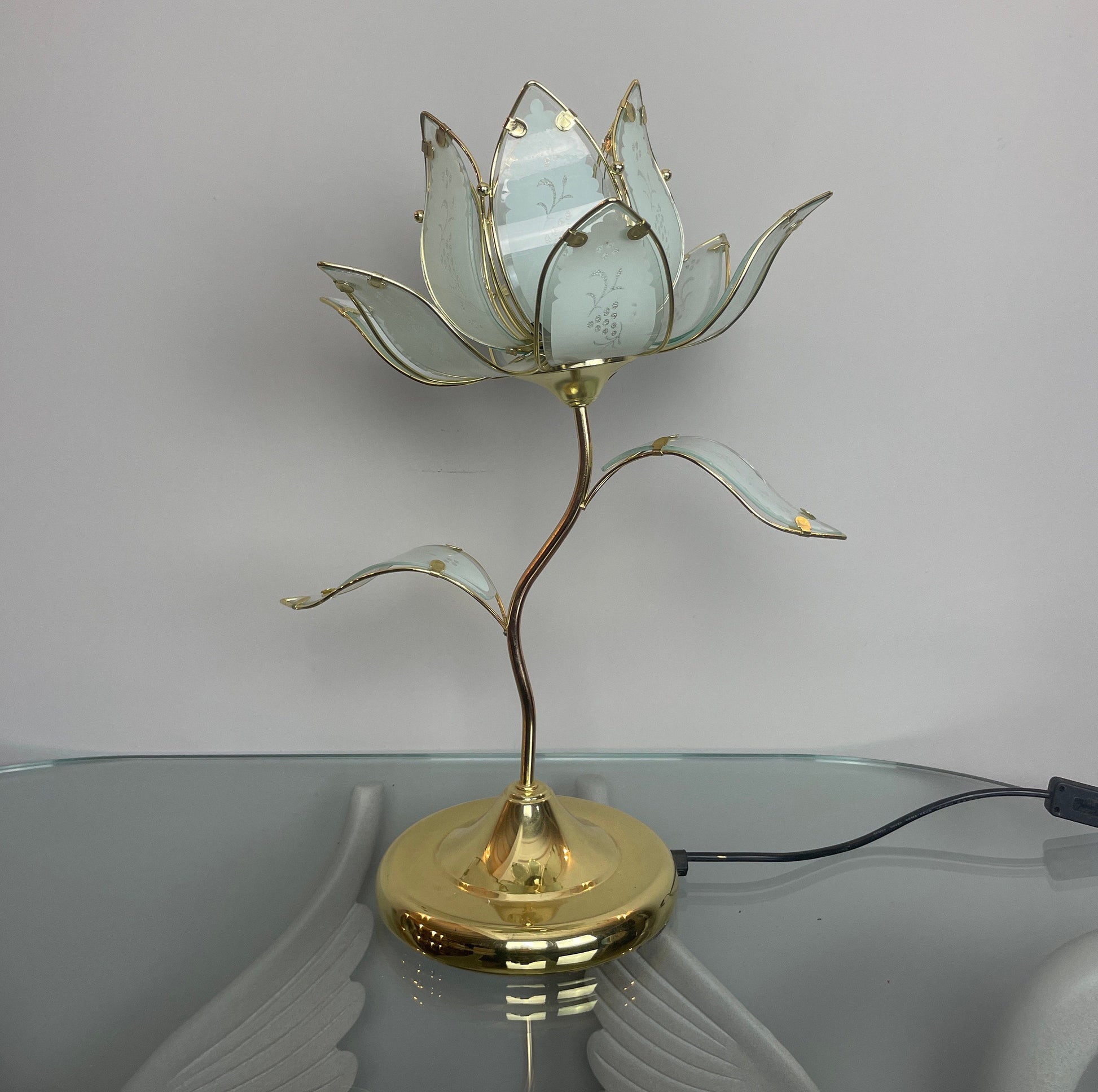 Mid Century Modern Vintage Hollywood Regency Glass Lotus Flower Table Lamp.