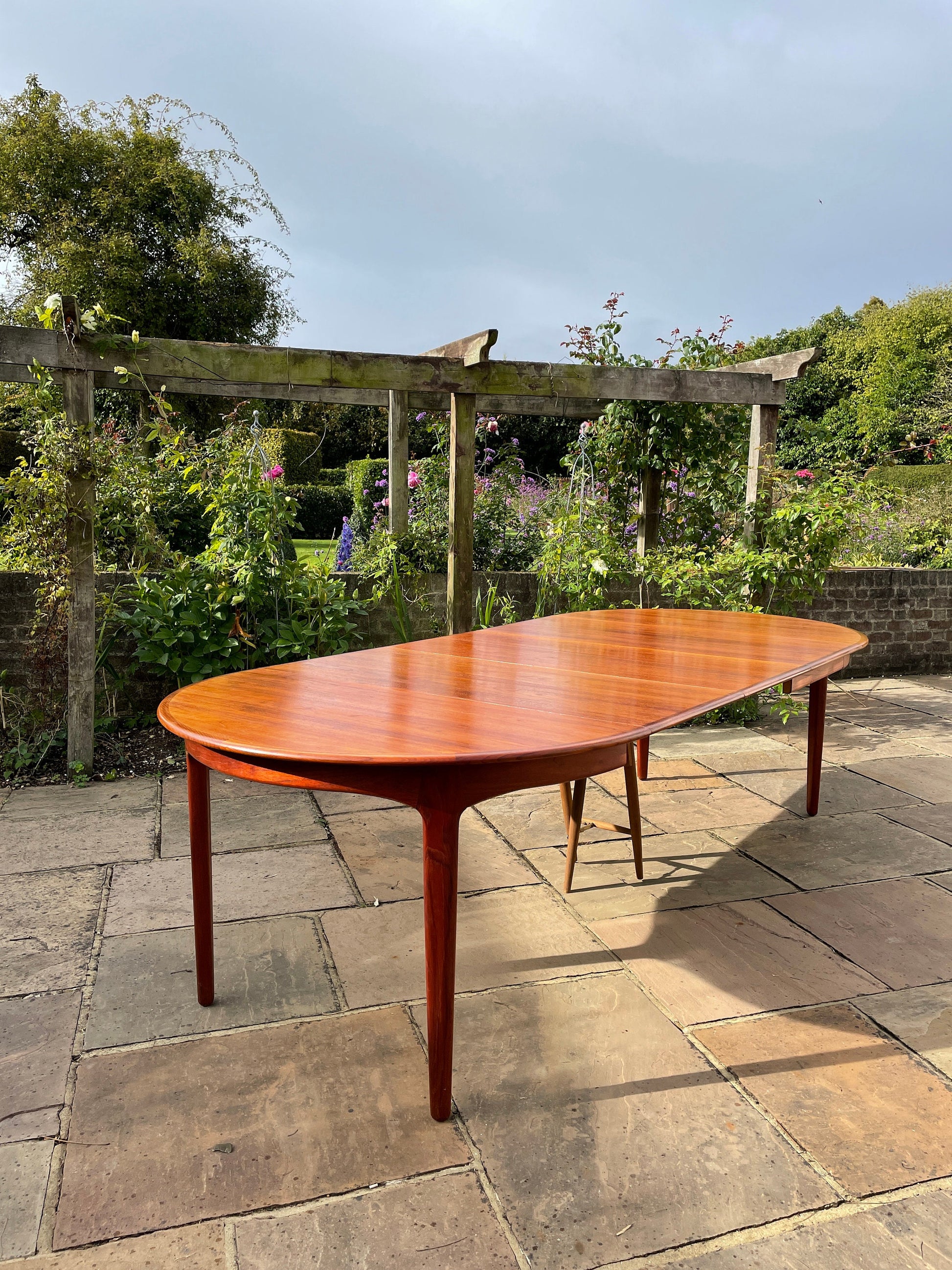 This large extendable "model 32" dining table was designed by Henning Kjærnulf and produced by Sorø Stolefabrik in Denmark in 1958. Made from teak, the table comes with three original leaves, that's extends table from 125cm to a maximum of 275cm. It is a beautiful example of Scandinavian craftsmanship, which looks wonderful both in its extended and original form. The three extra leaves can be used for as many or as little guests as desired and due to their size, are easy to store away.