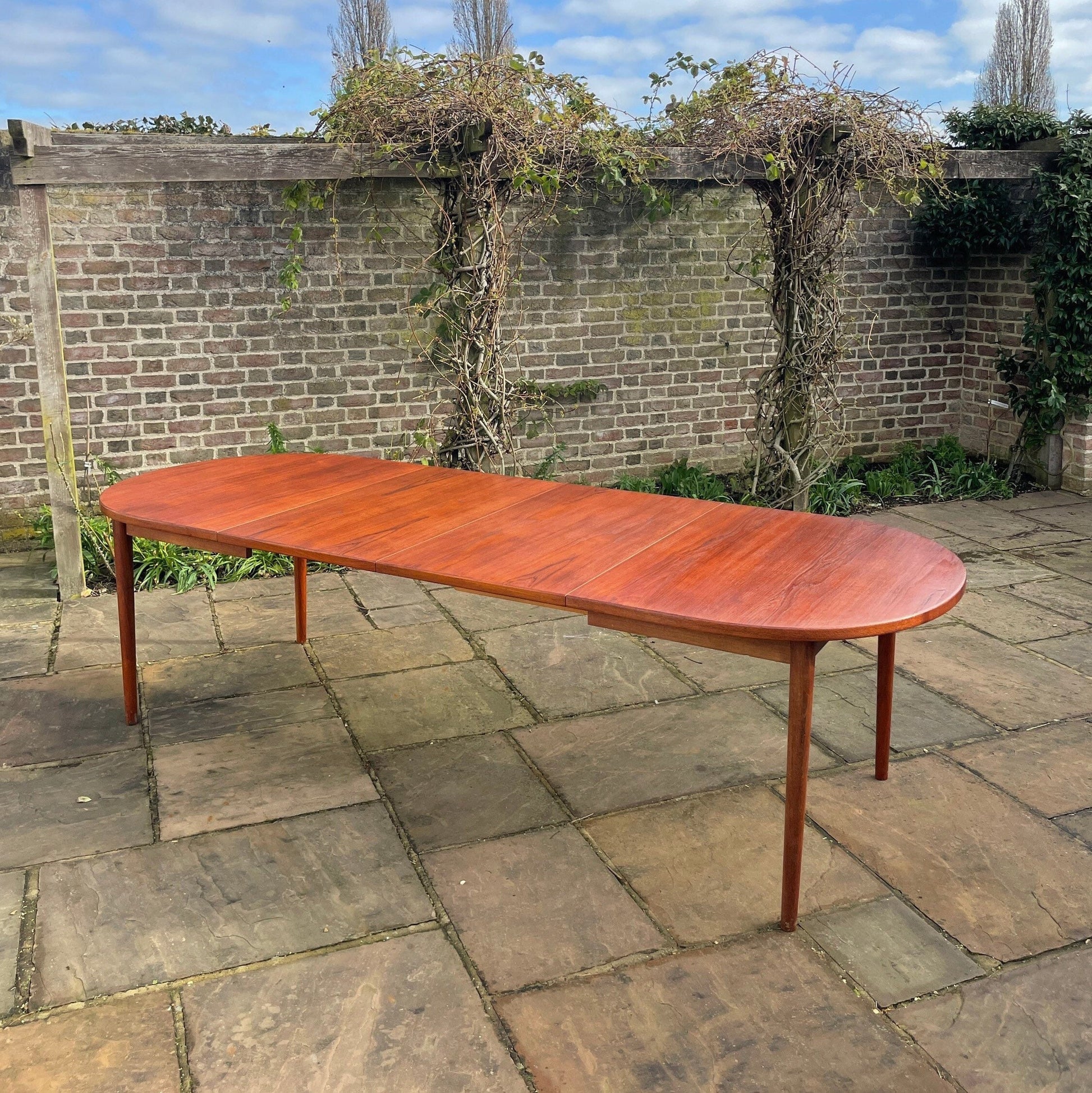 A stylish Swedish extending teak dining table designed by Nils Jonsson for Swedish company Troeds. The table has two removable leaves that can easily stored away, meaning the tables size can be adjusted to your needs. When fully extended 8-10 people can be seated around it, whilst at it is smallest size, 4-6 can fit comfortably.