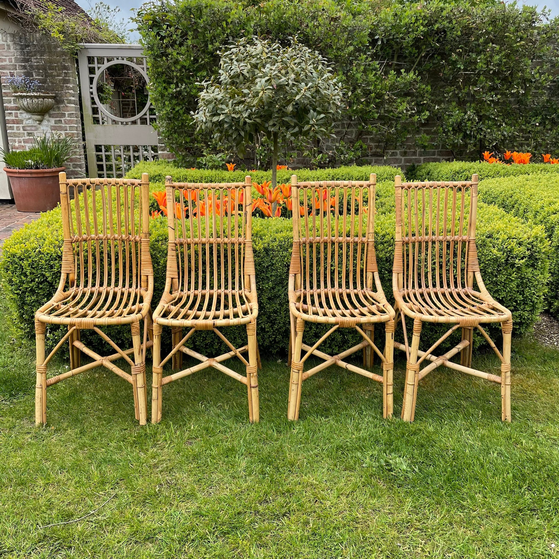 Original 1960s Mid Century Modern Set of 4 Bamboo Dining Chairs (Outdoor and Indoor)