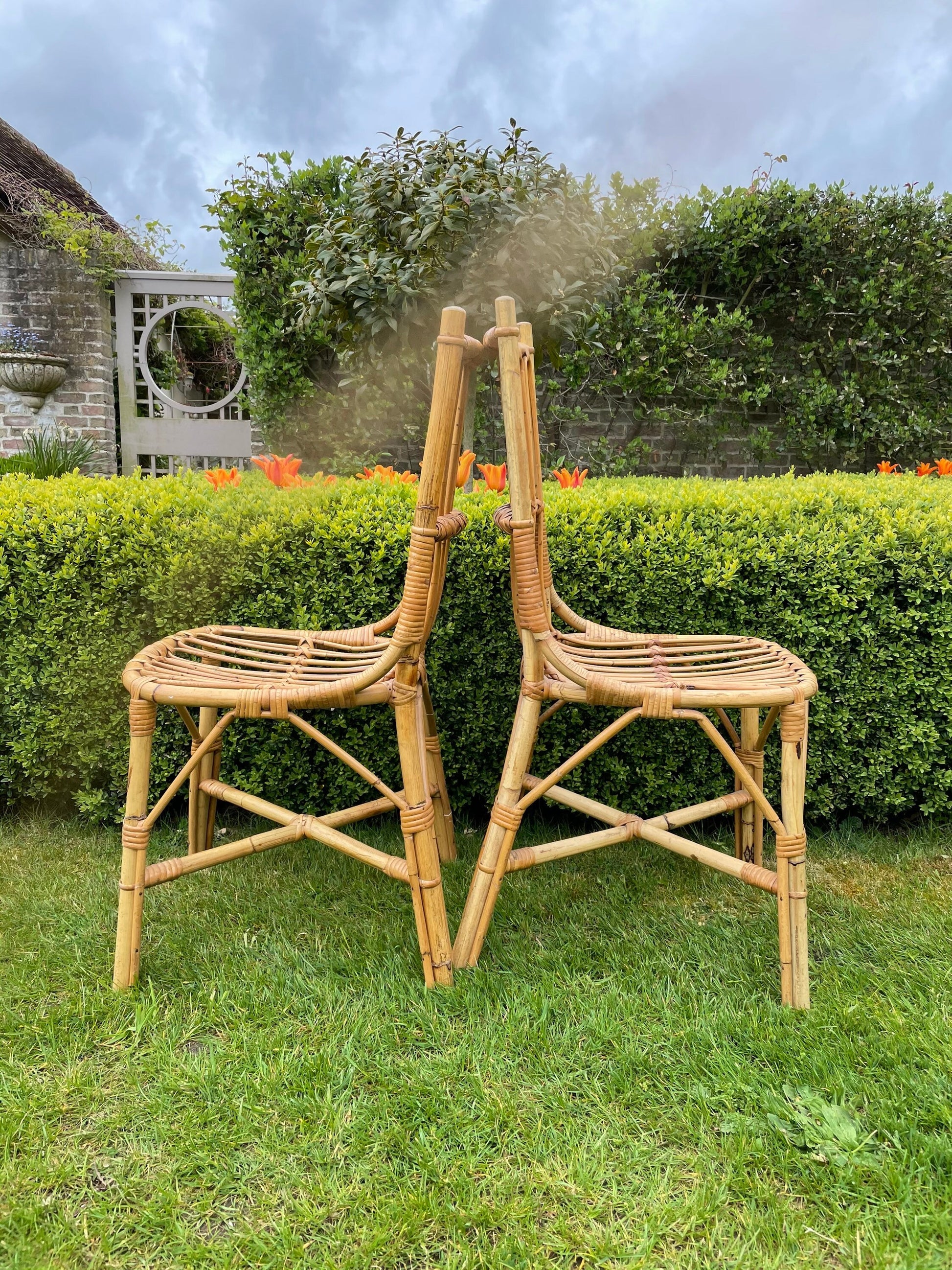 These wonderful dining chairs are in excellent condition. They would make a wonderful addition to any home and now that the summer is coming, they could also be used outdoors! They are very unusual to find.