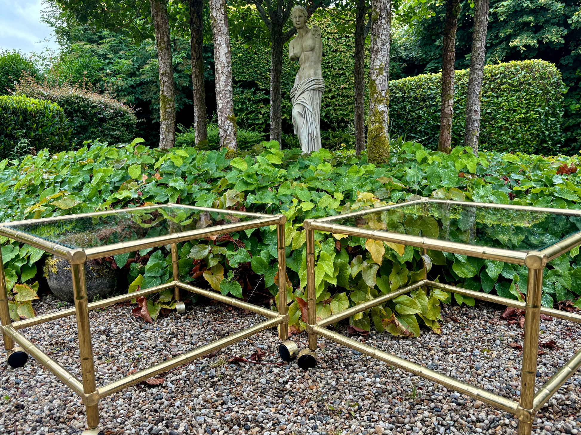 These fabulous 1960s Hollywood Regency-style tables are perfect for adding a touch of French charm to your space. Both are in good vintage condition.
