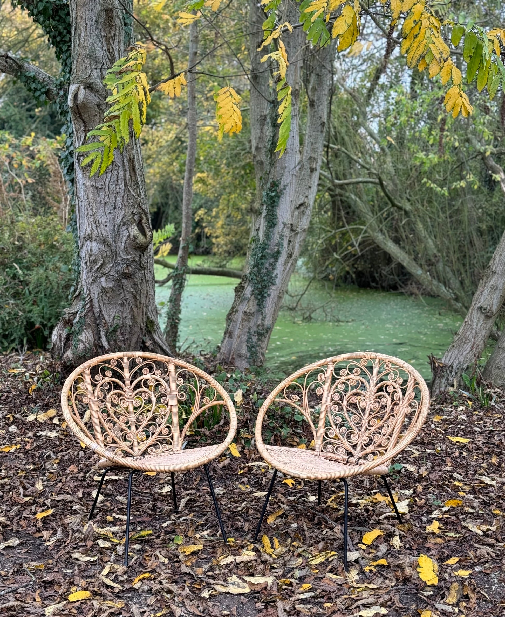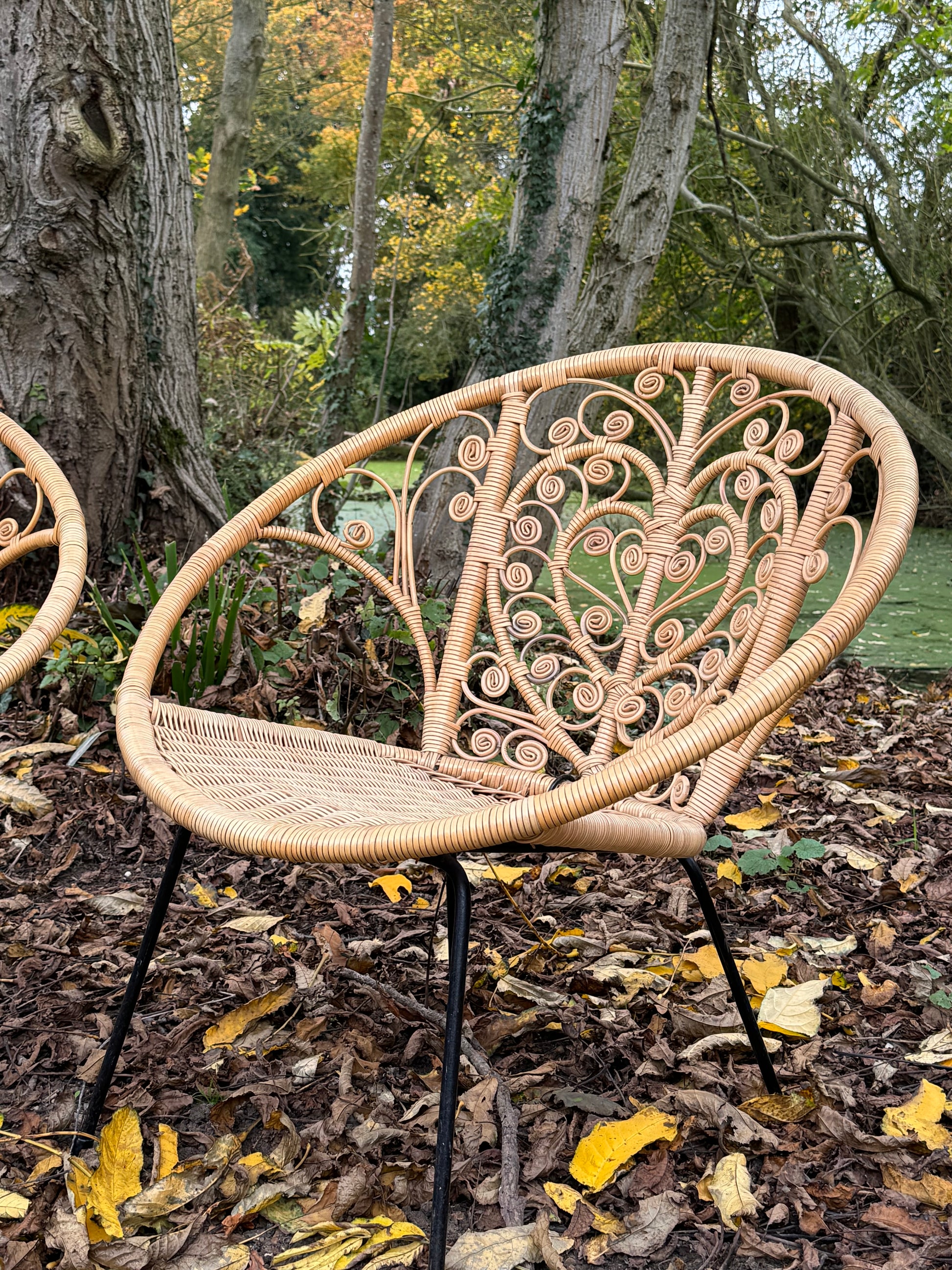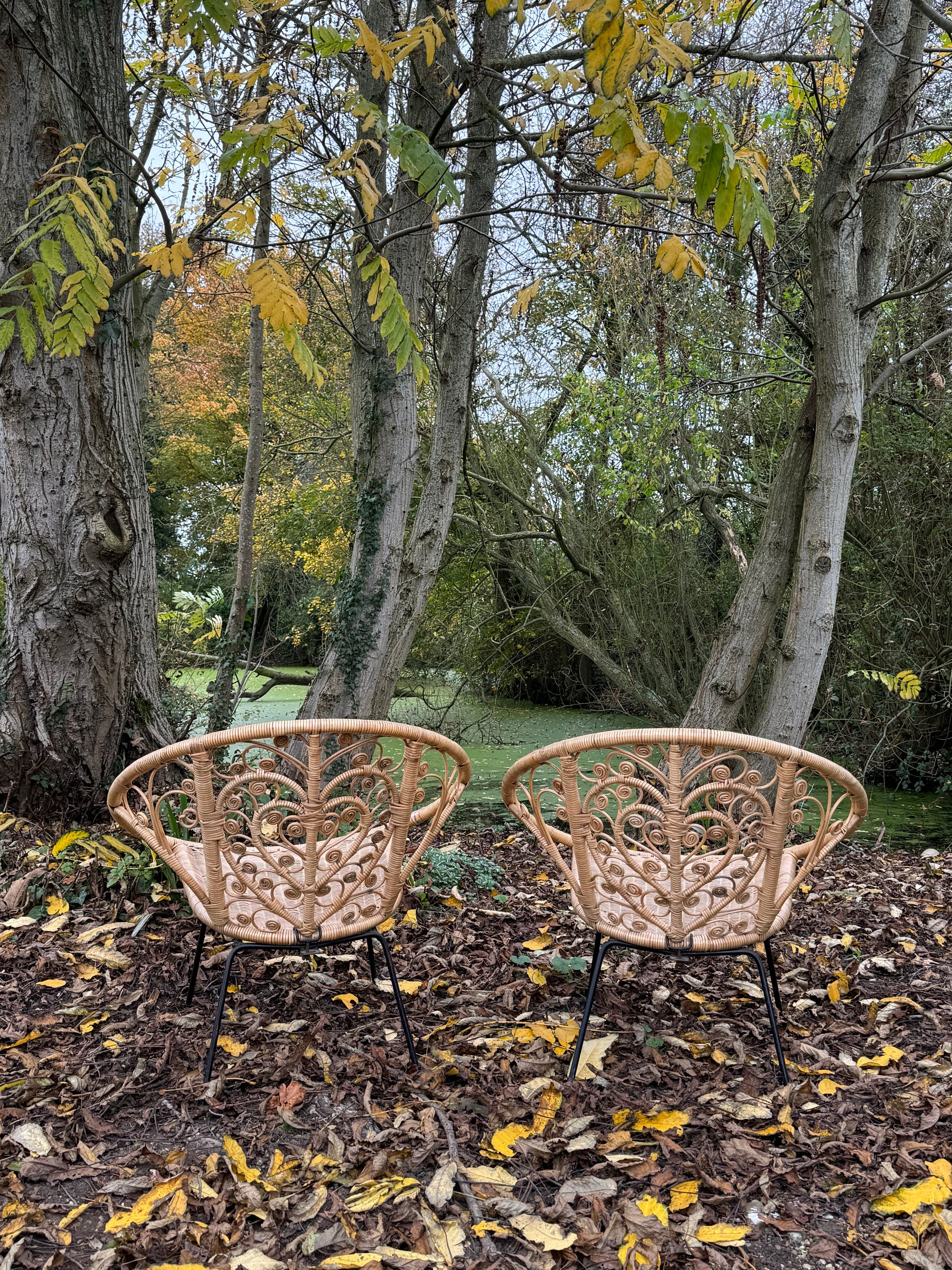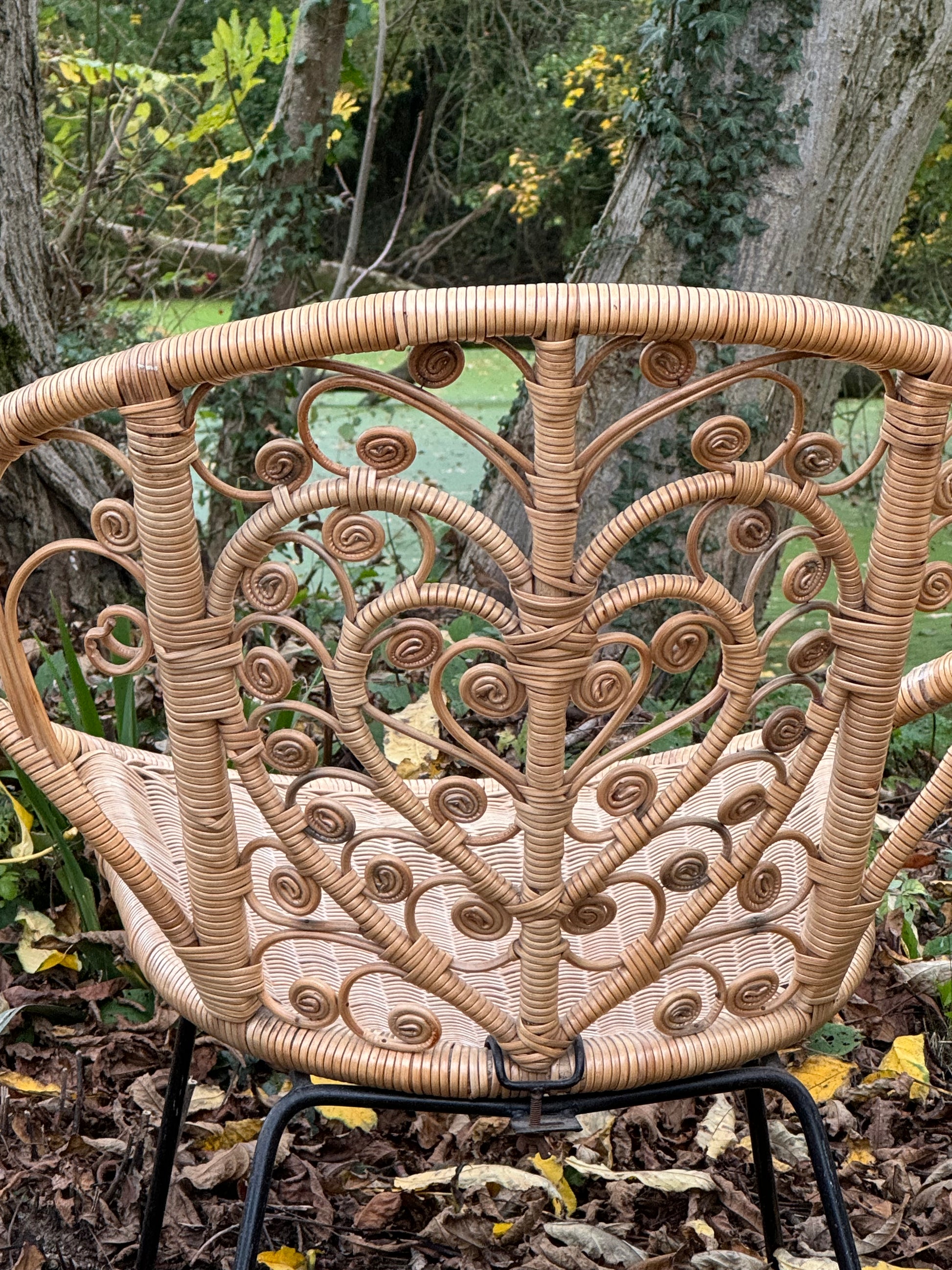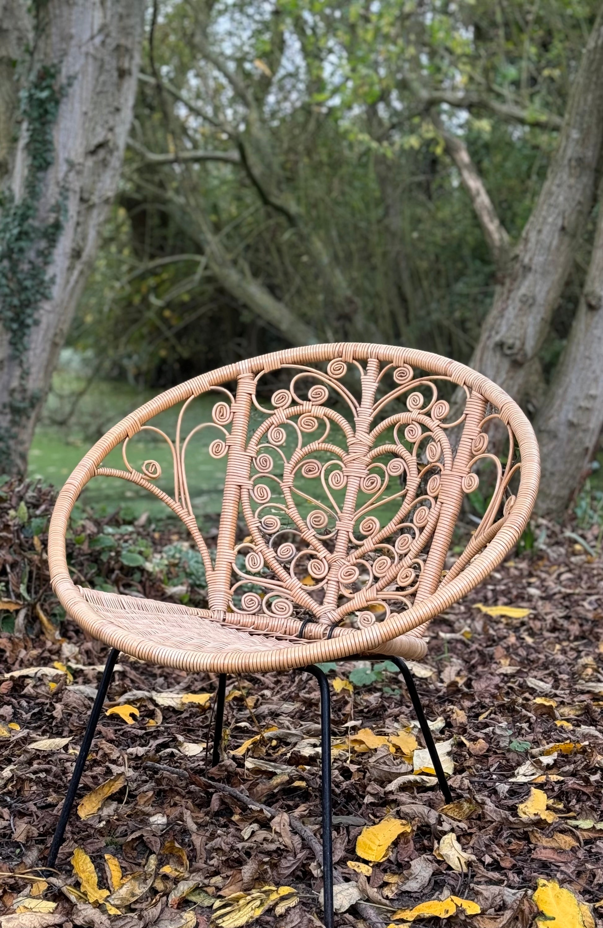 These vintage chairs have a fabulous central heart design adorned with scrolls. They are made from a coated wicker finish and are suitable for both indoor and outdoor use. Perfect for adding some boho charm to both indoor and outdoor spaces.