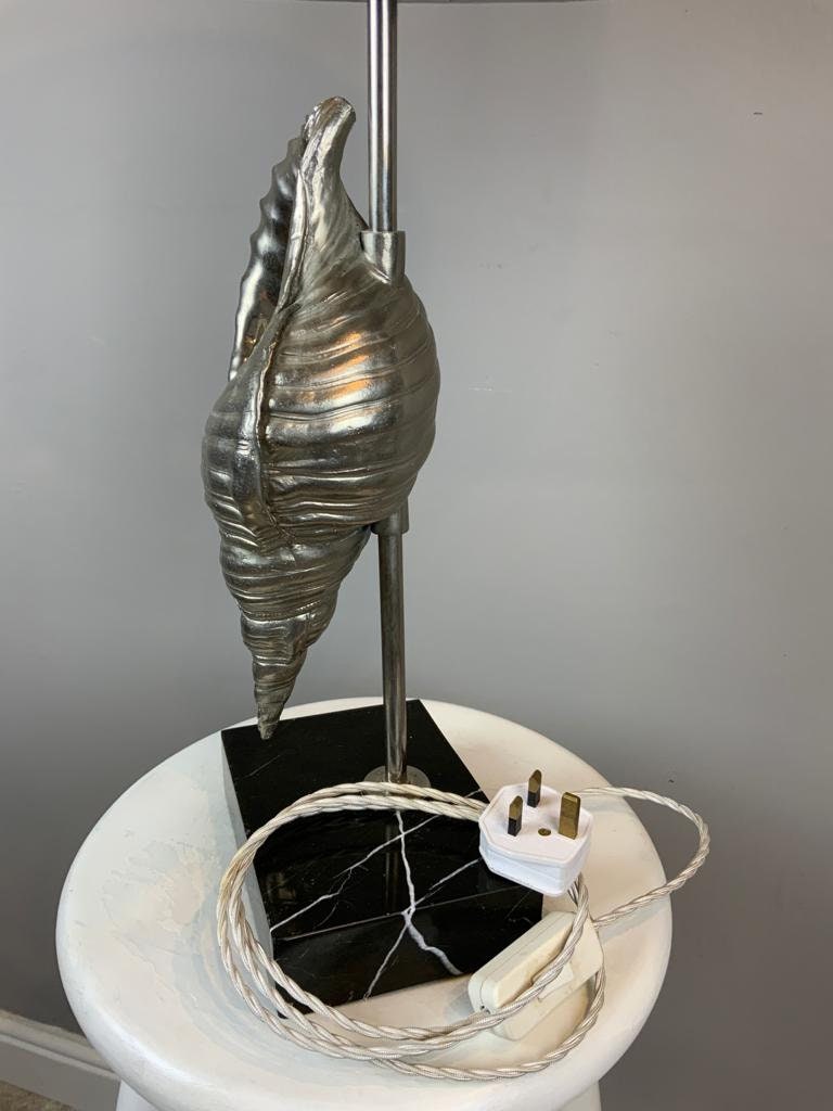 Silver Coloured, Cast Metal Shell Lamp in the style of Chapman on a black marble base.