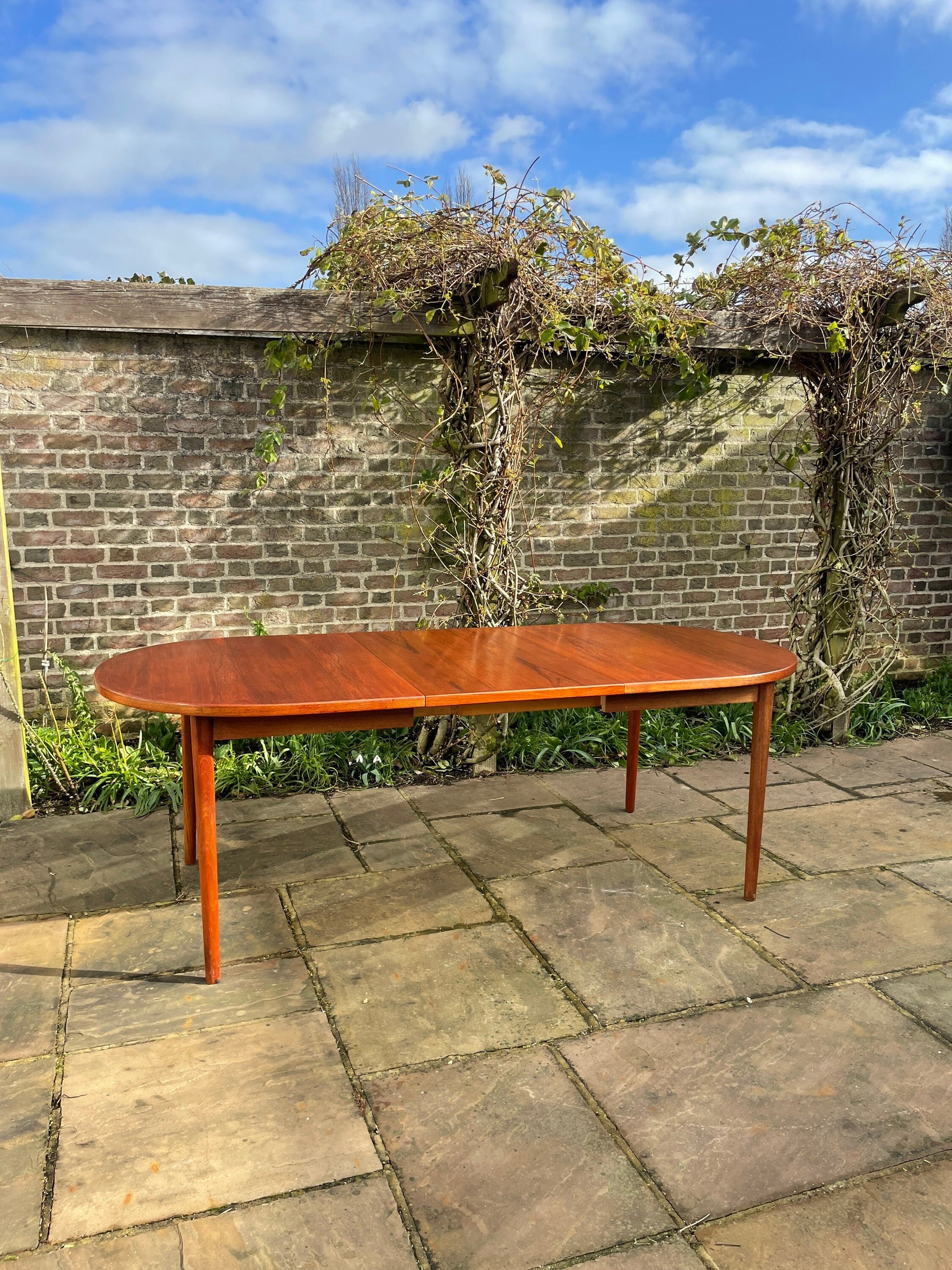 A stylish Swedish extending teak diningyr table designed by Nils Jonsson for Swedish company Troeds. The table has two removable leaves that can easily stored away, meaning the tables size can be adjusted to your needs. When fully extended 8-10 people can be seated around it, whilst at it is smallest size, 4-6 can fit comfortably.