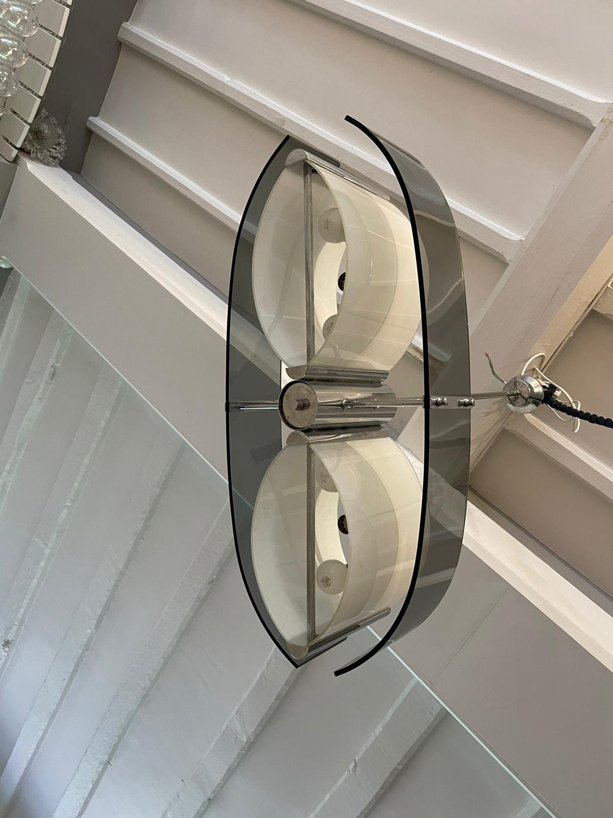 Vintage Mid Century Modern 1970s Glass and Chrome Italian Hanging Light
