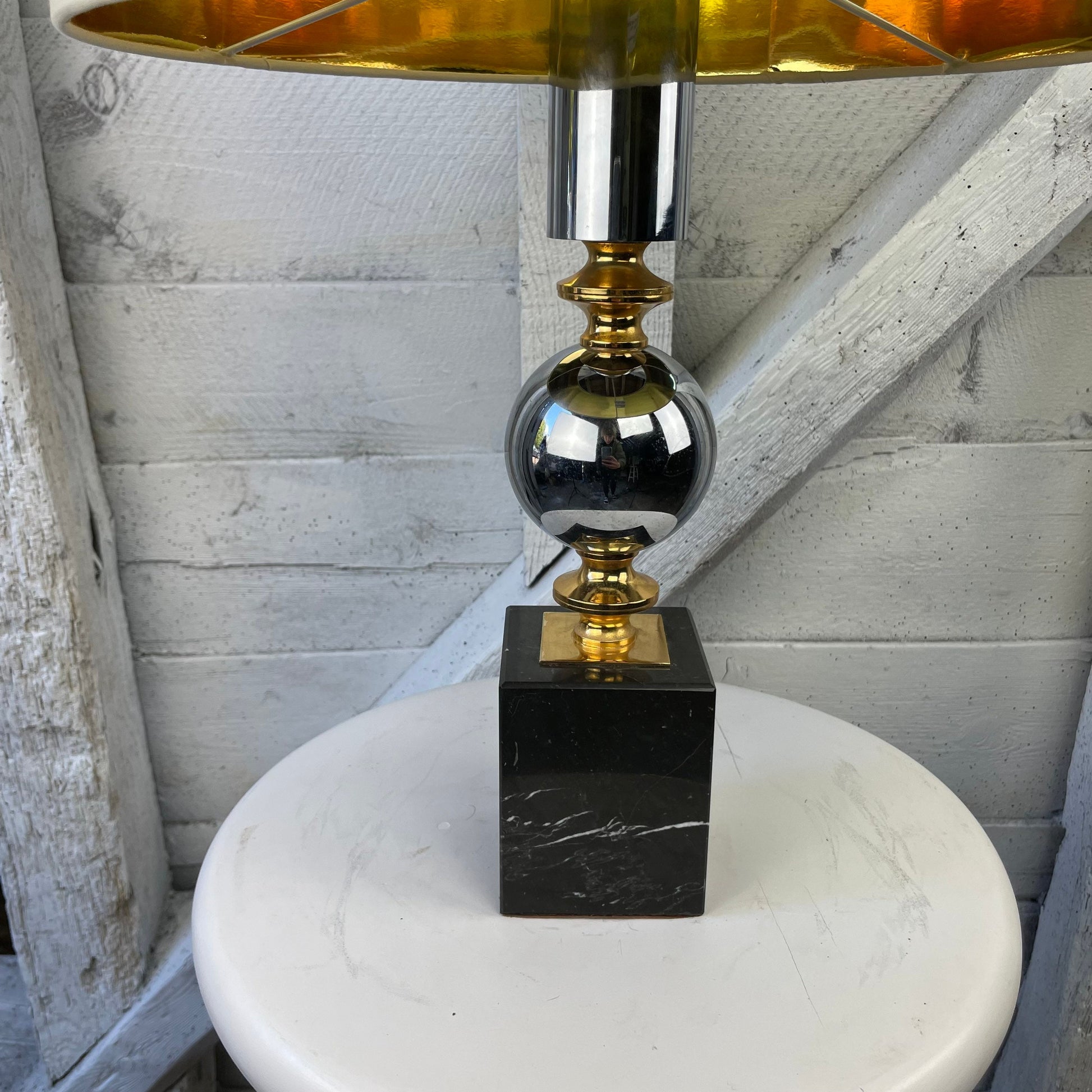 VINTAGE MCM Hollywood regency CHROME , gold and marble TABLE LAMP by MAISON BARBIER 1960