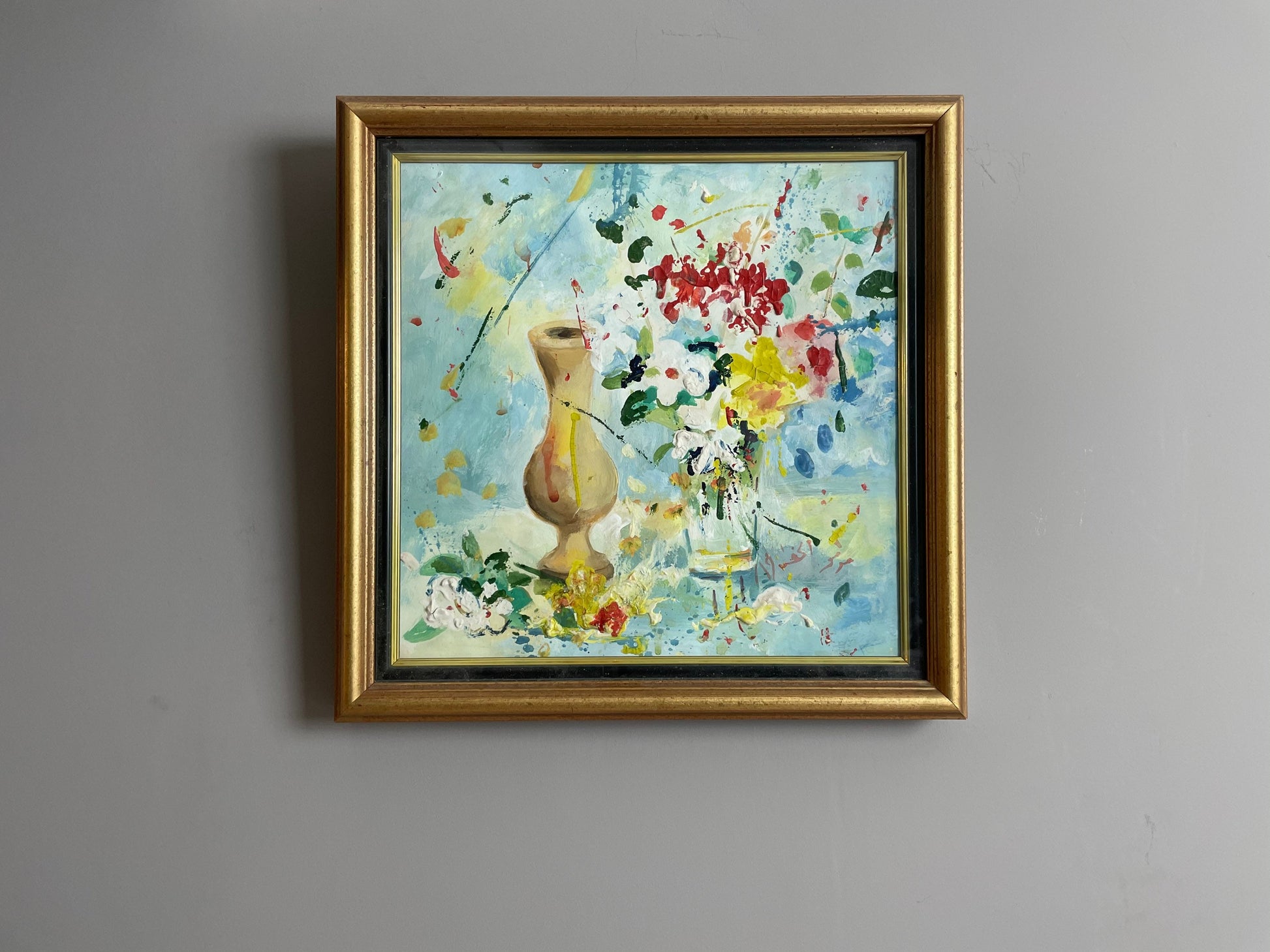 Beautiful Mid Century Modern Oil Painting of Flowers in a Vase